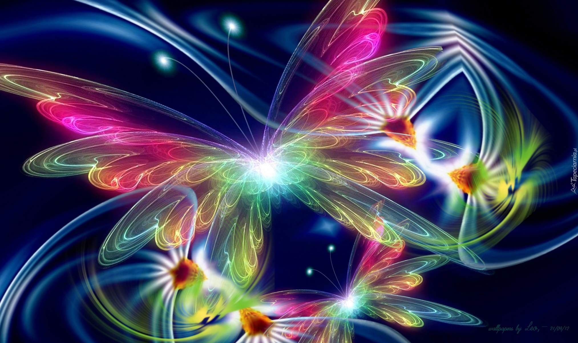 Edytor tapety: Grafika, Poświata, Motyl, Kwiaty, Fractalius