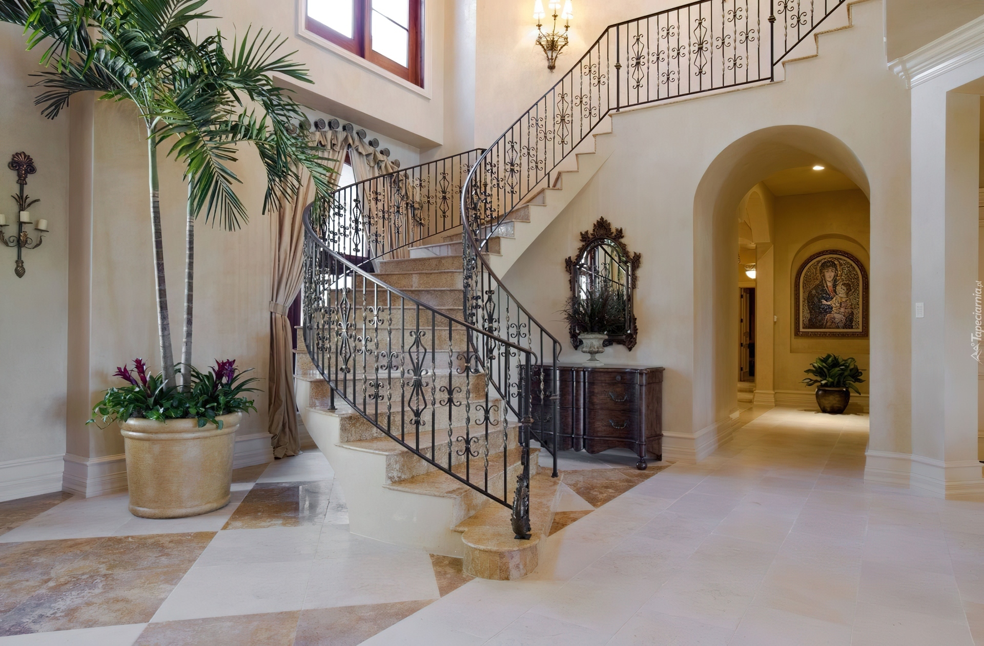 Edytor tapety: Wnętrze, Domu, Schody, Palma