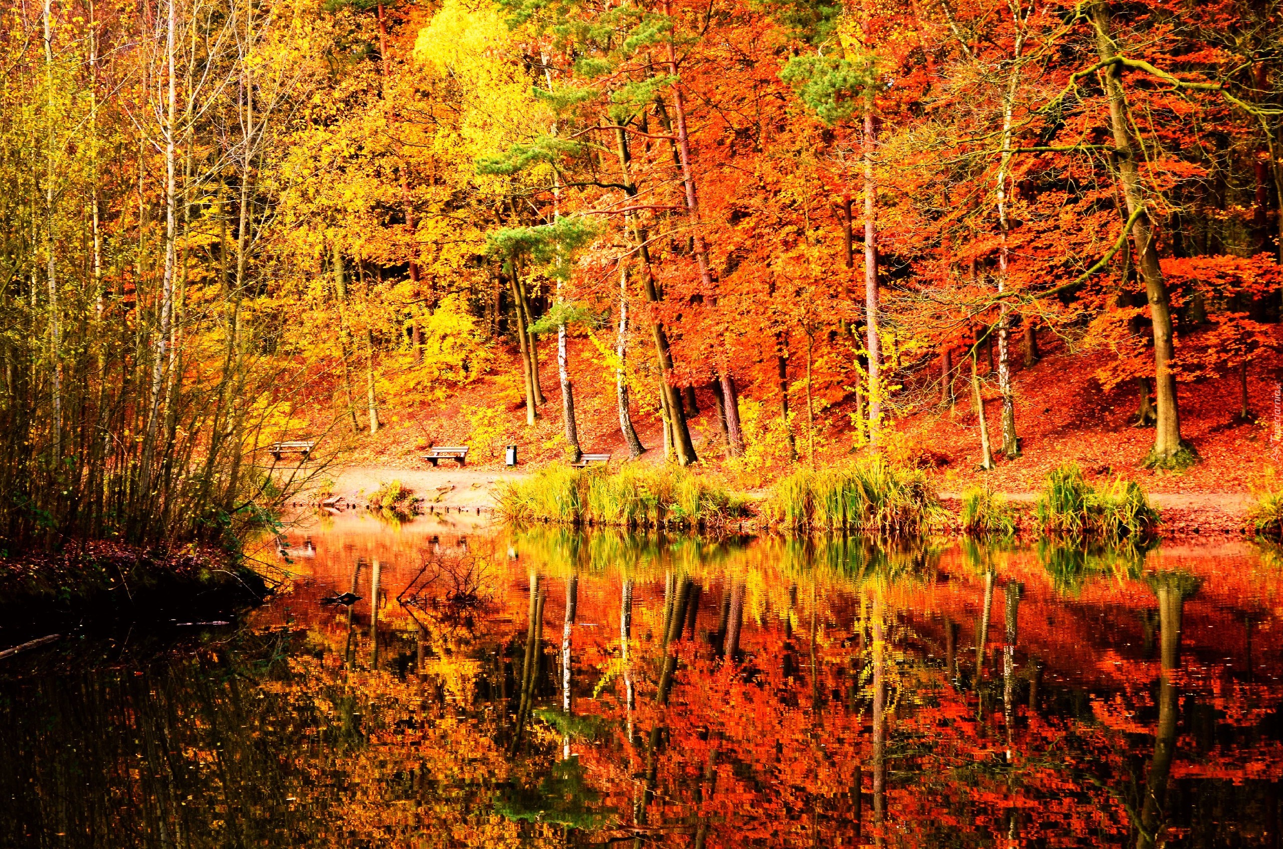 Edytor tapety: Drzewa, Liście, Jezioro