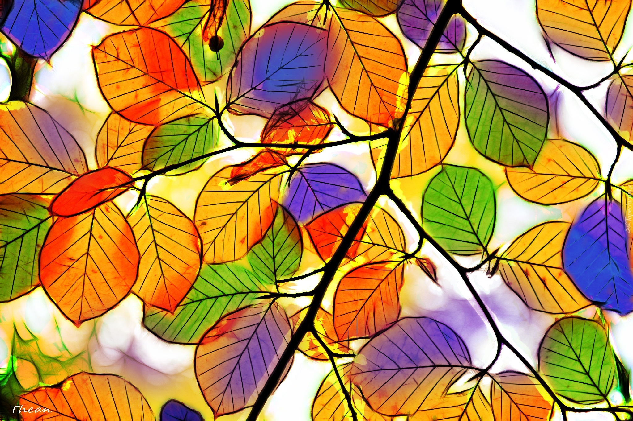 Edytor tapety: Kolorowe, Liście, Grafika