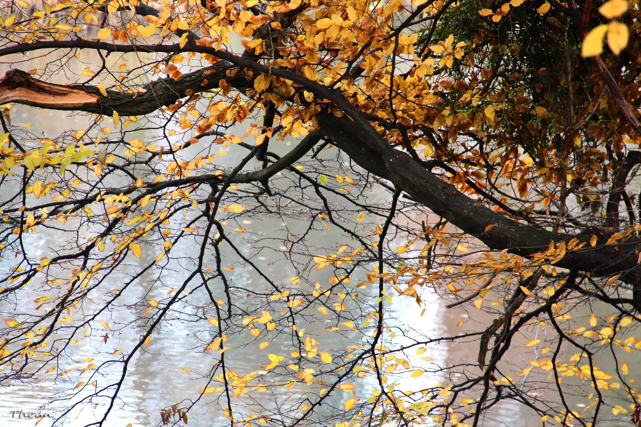 Edytor tapety: Drzewo, Nad, Wodą, Jesień, Żółte, Liście