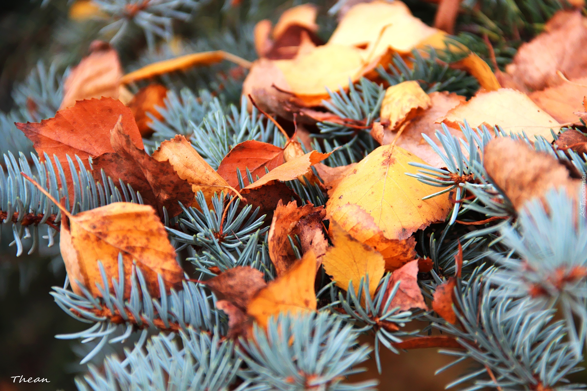 Edytor tapety: Świerk, Srebrzysty, Suche, Liście, Jesień