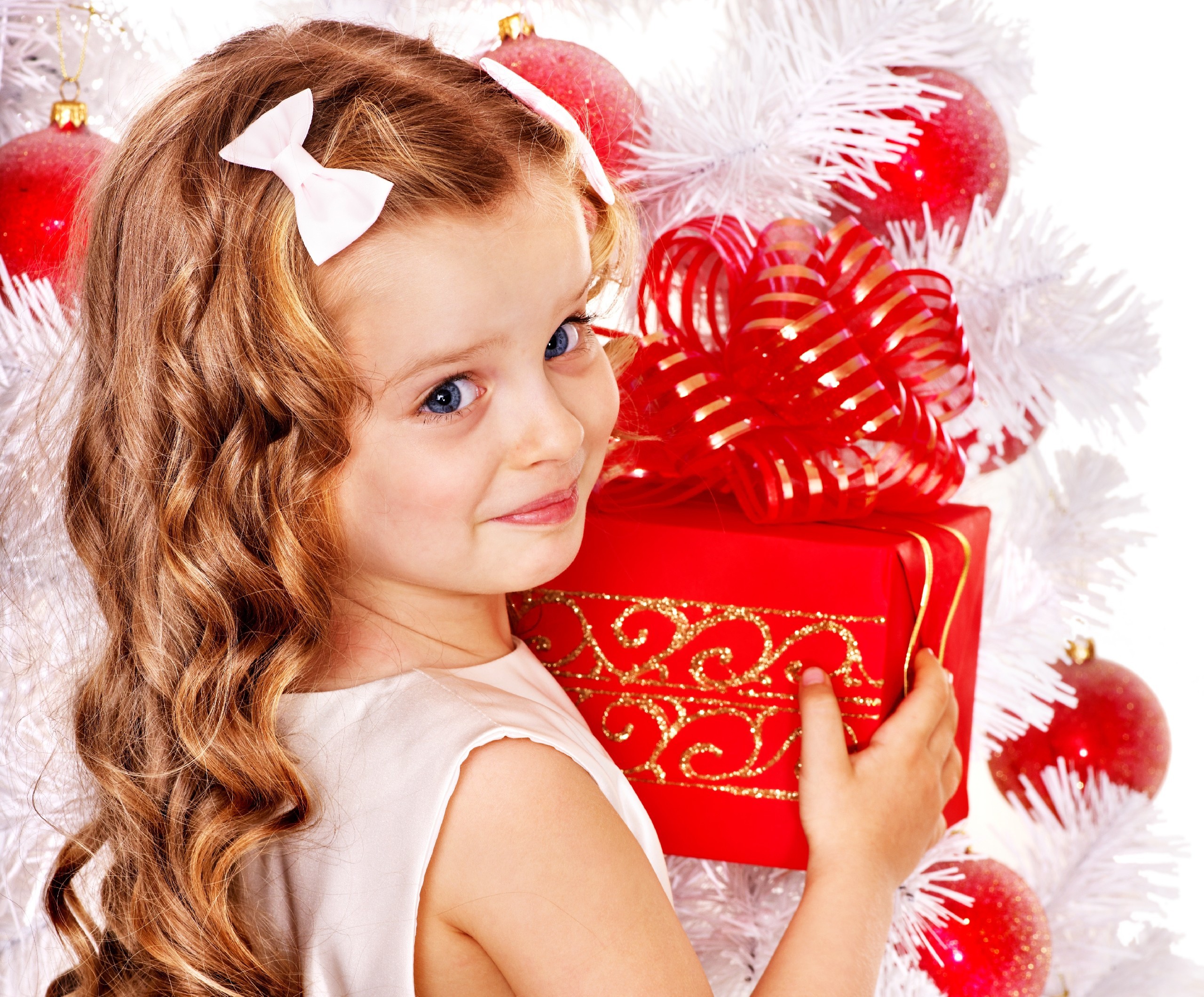Edytor tapety: Mała, Dziewczynka, Prezent, Choinka