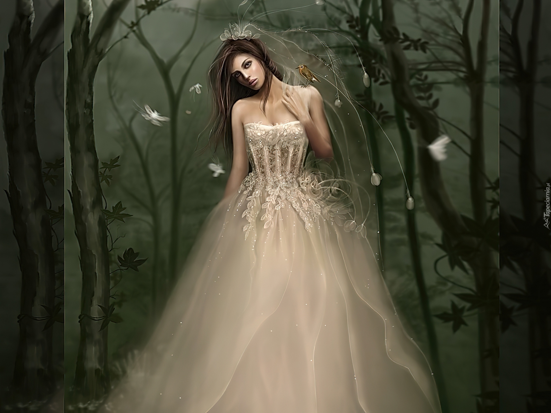 Edytor tapety: Kobieta, Biała, Suknia, Welon, Panna młoda