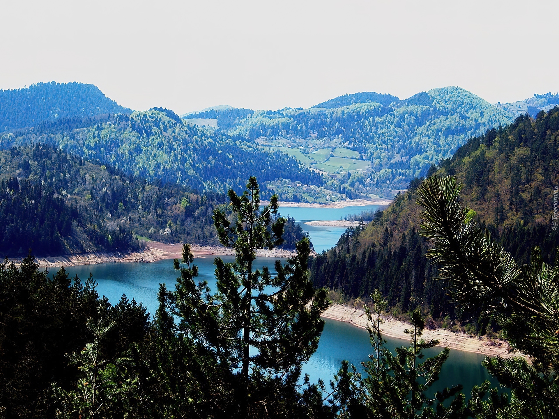 Edytor tapety: Jezioro, Zalesione, Góry, Zaovine, Serbia