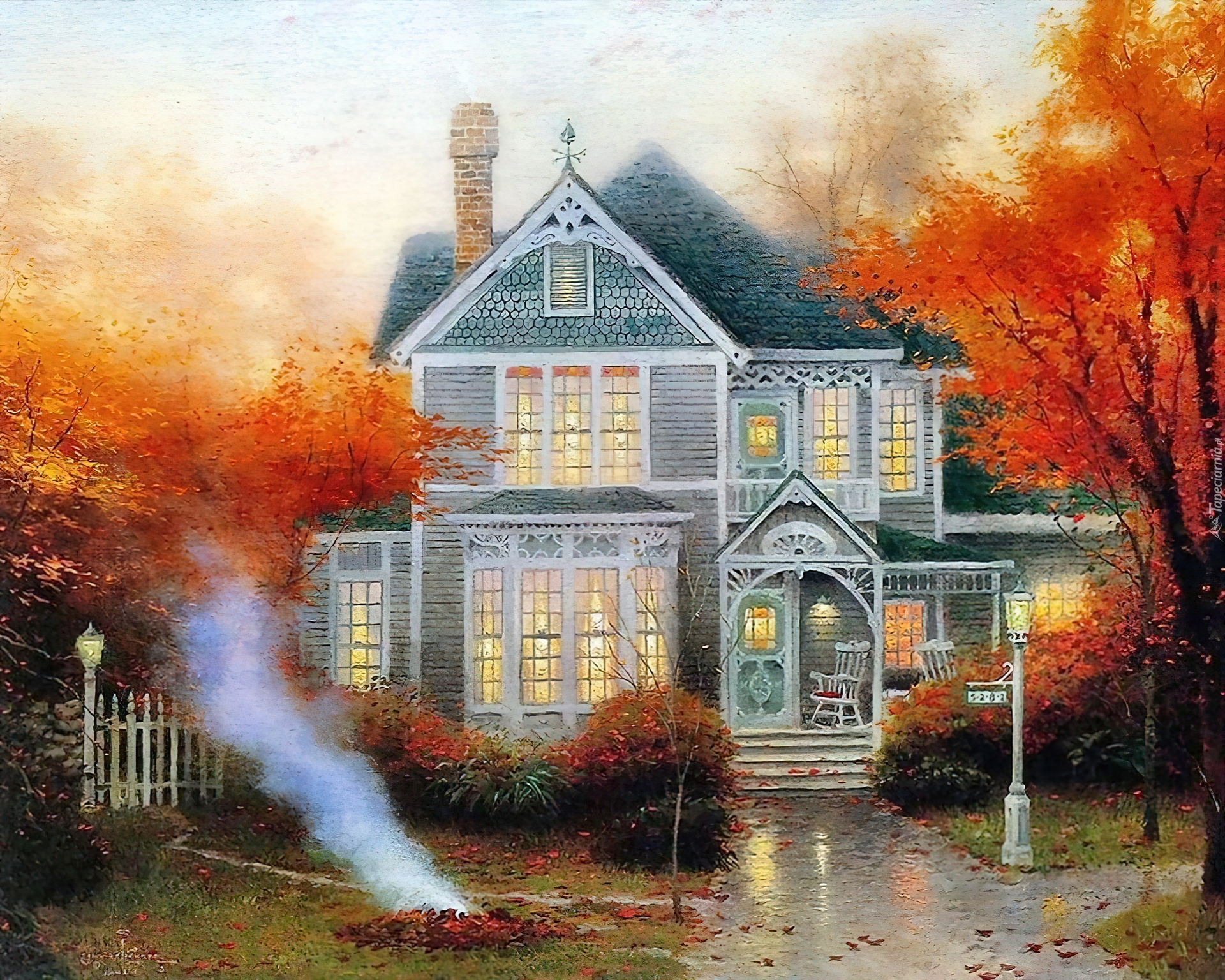Edytor tapety: Dom, Jesień, Thomas Kinkade