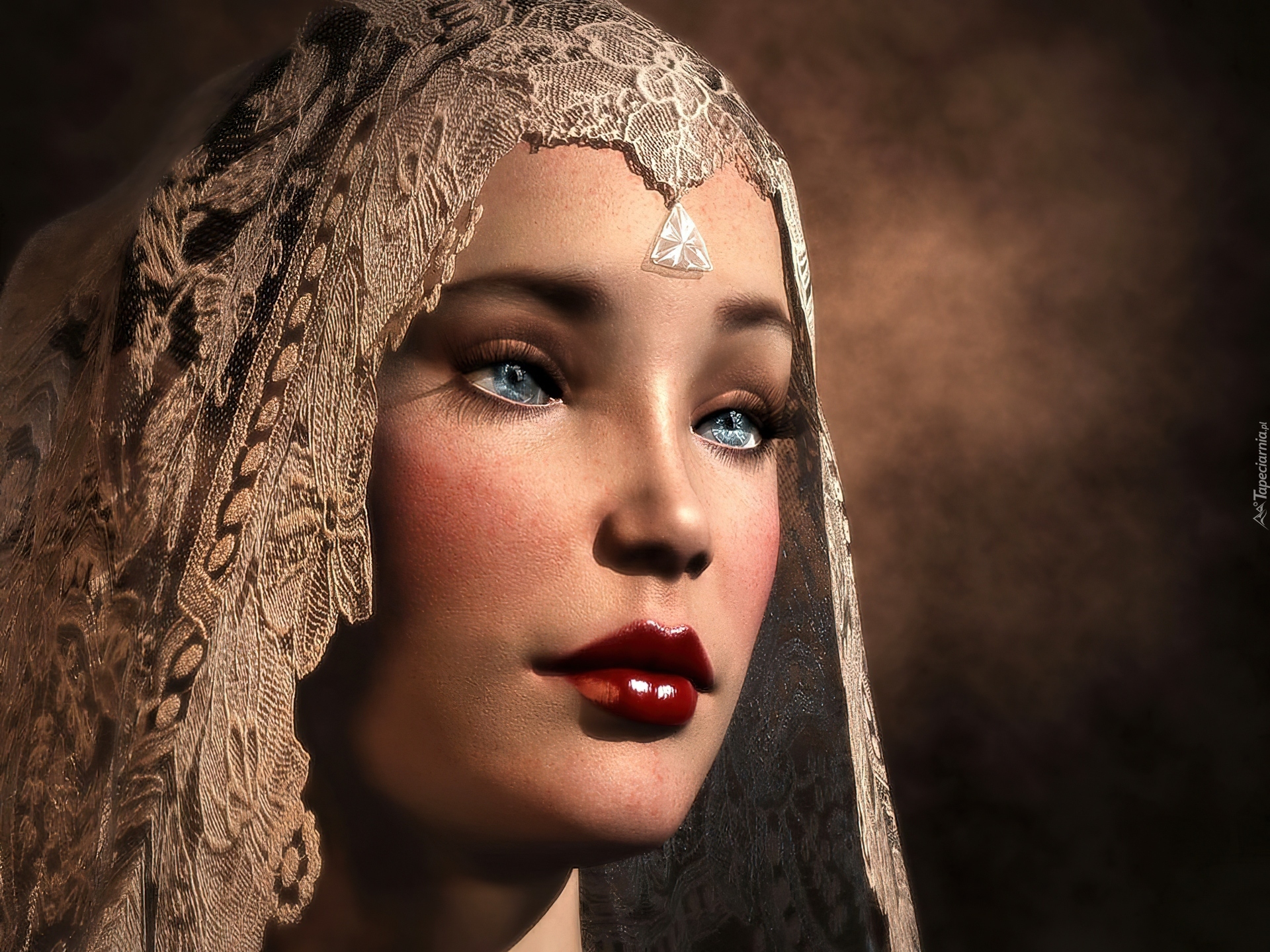 Edytor tapety: Dziewczyna, Szal, Spojrzenie