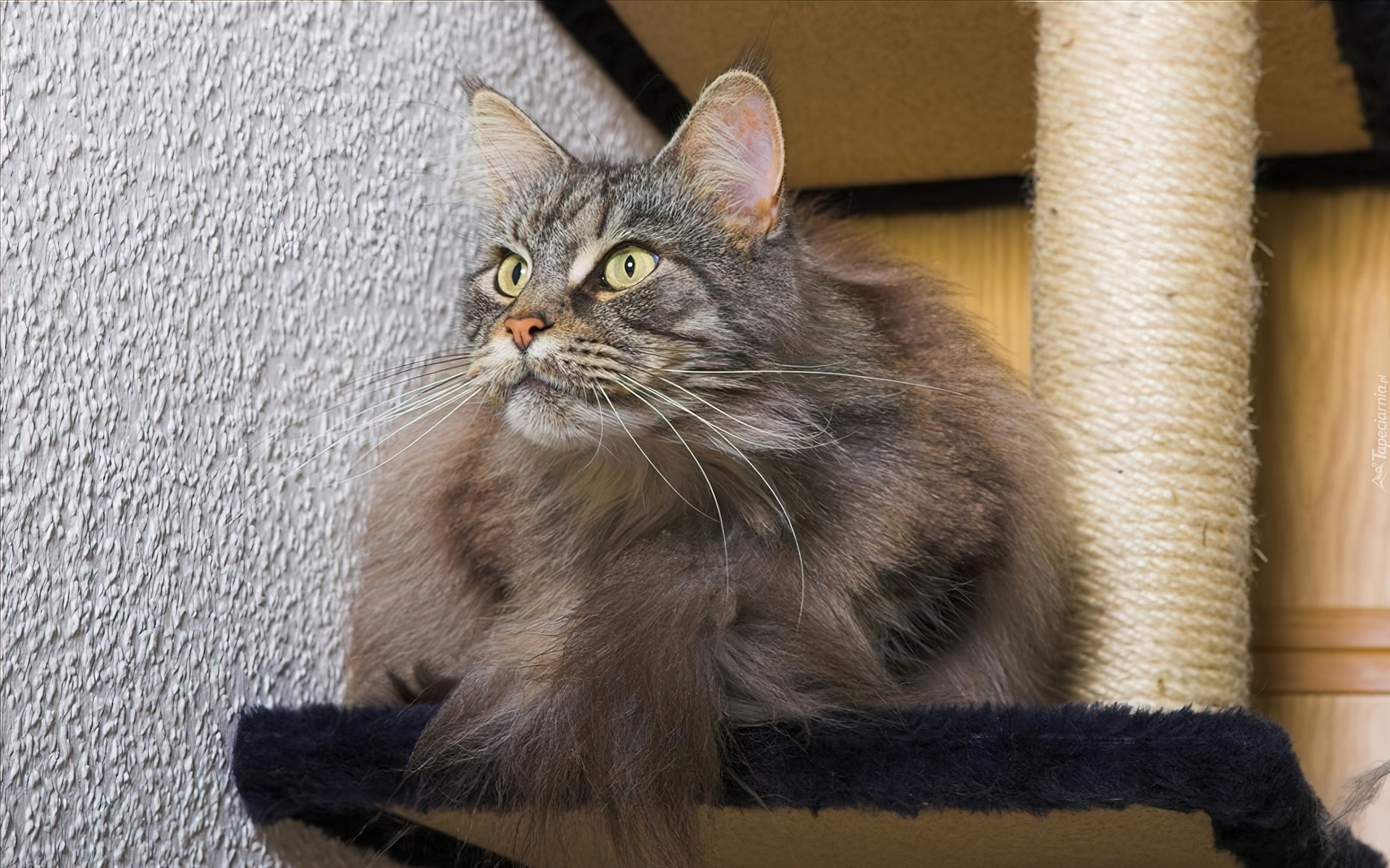 Edytor tapety: Kot, Siedzący, Na, Drapaku