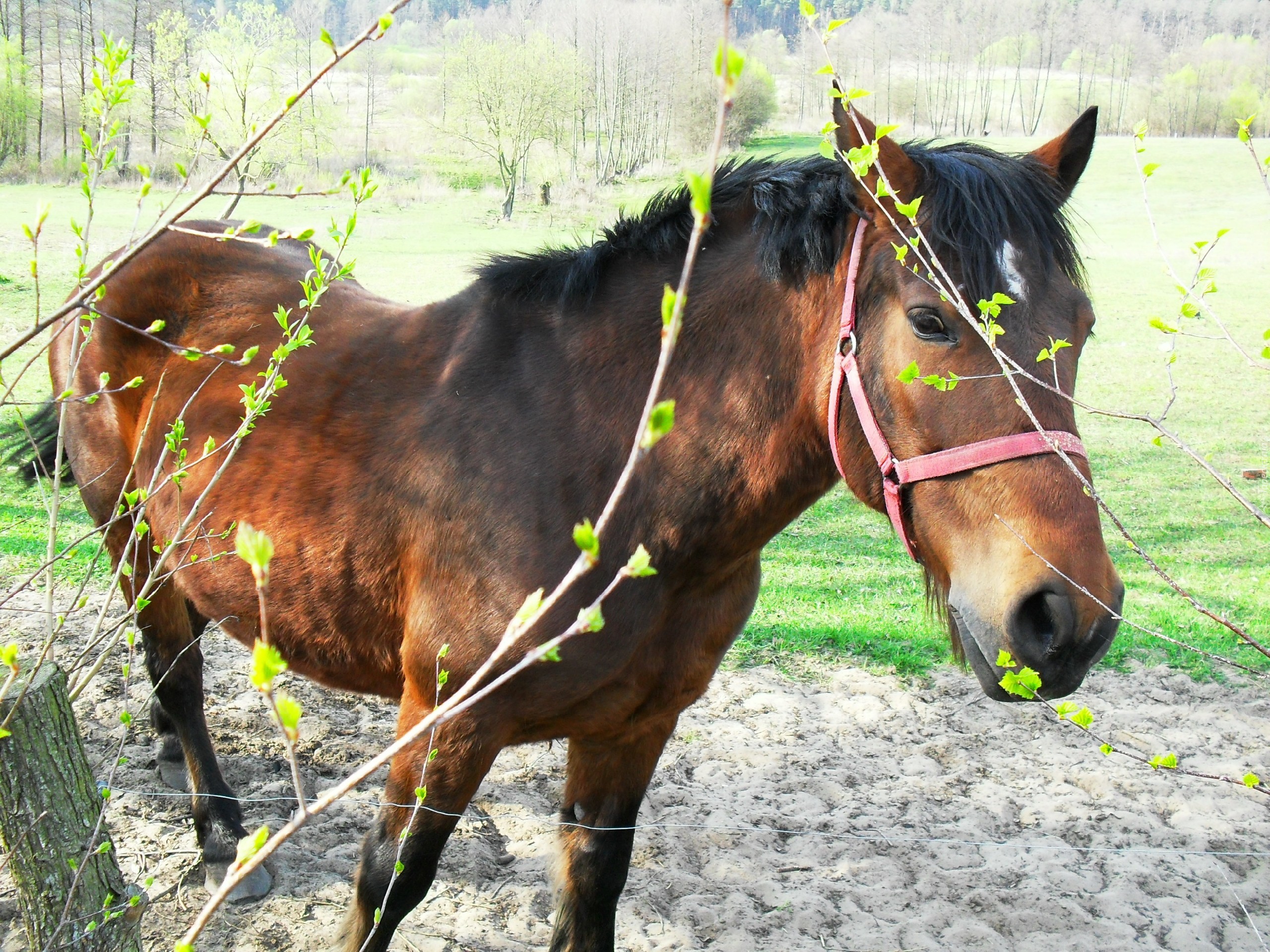 Edytor tapety: Koń, Gałązki, Czerwony, Kantar