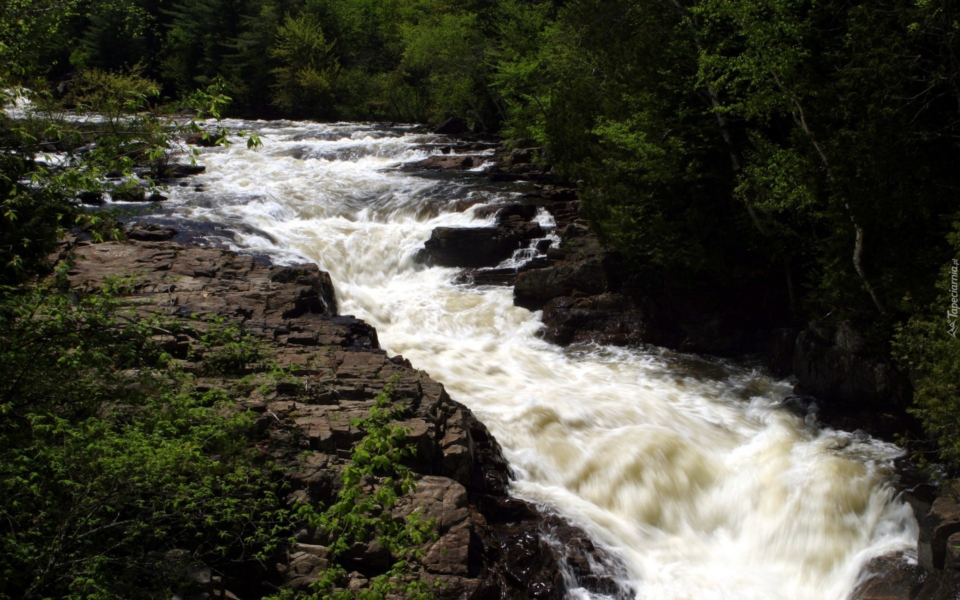 Edytor tapety: Rwąca, Rzeka, Skałki, Drzewa