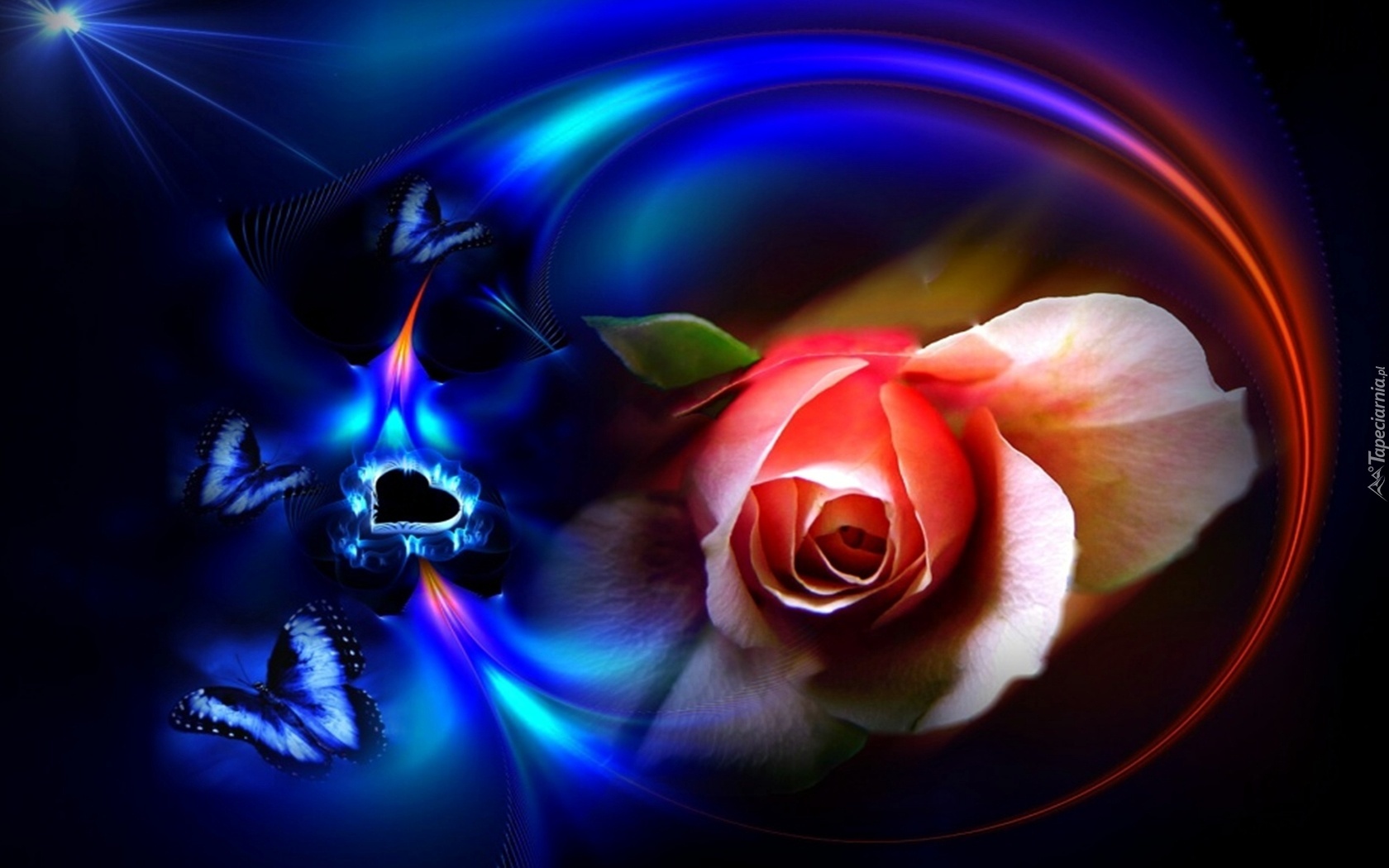 Edytor tapety: Róża, Motyle, Serduszko