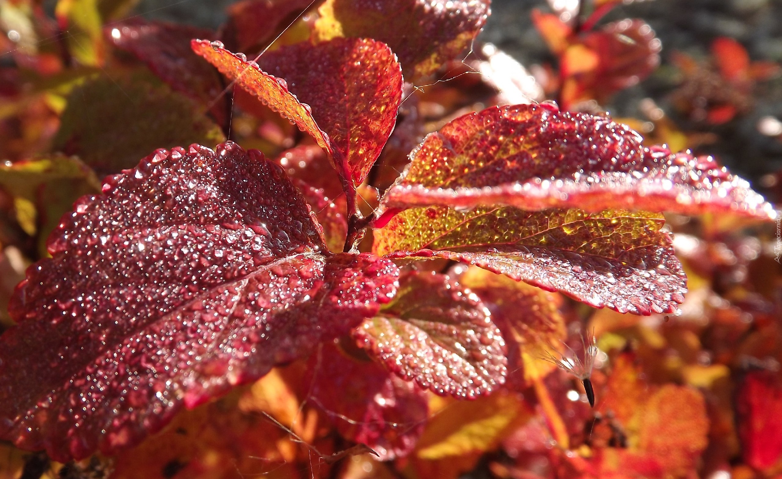 Edytor tapety: Czerwone, Liście, Połyskujące, Kropelki, Rosy