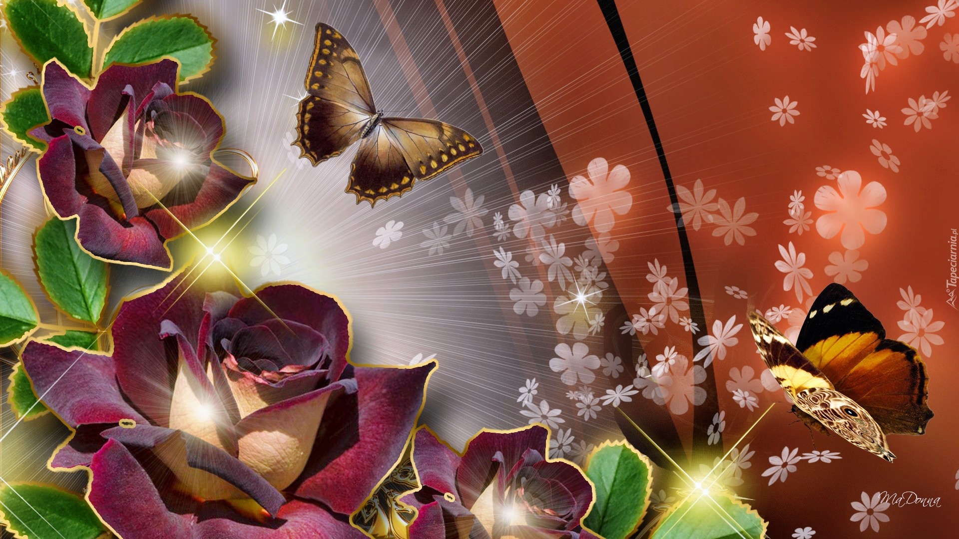 Edytor tapety: Bordowe, Róże, Motyle, Art