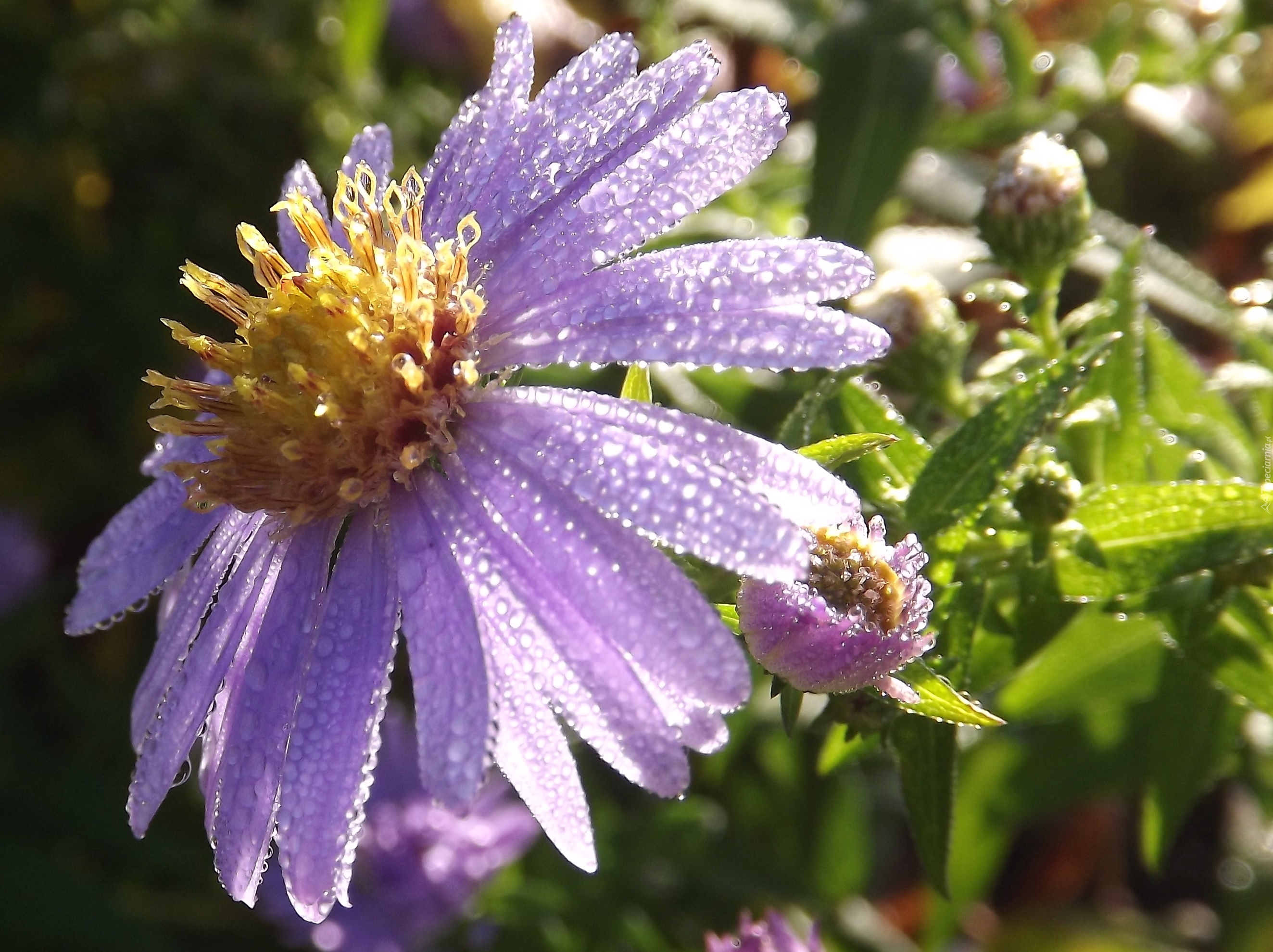 Edytor tapety: Aster, Fioletowy, Kropelki, Rosy