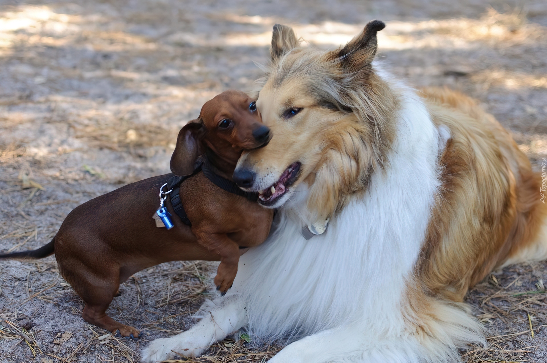 Edytor tapety: Jamnik, Owczarek Szkocki Długowłosy, Zabawa