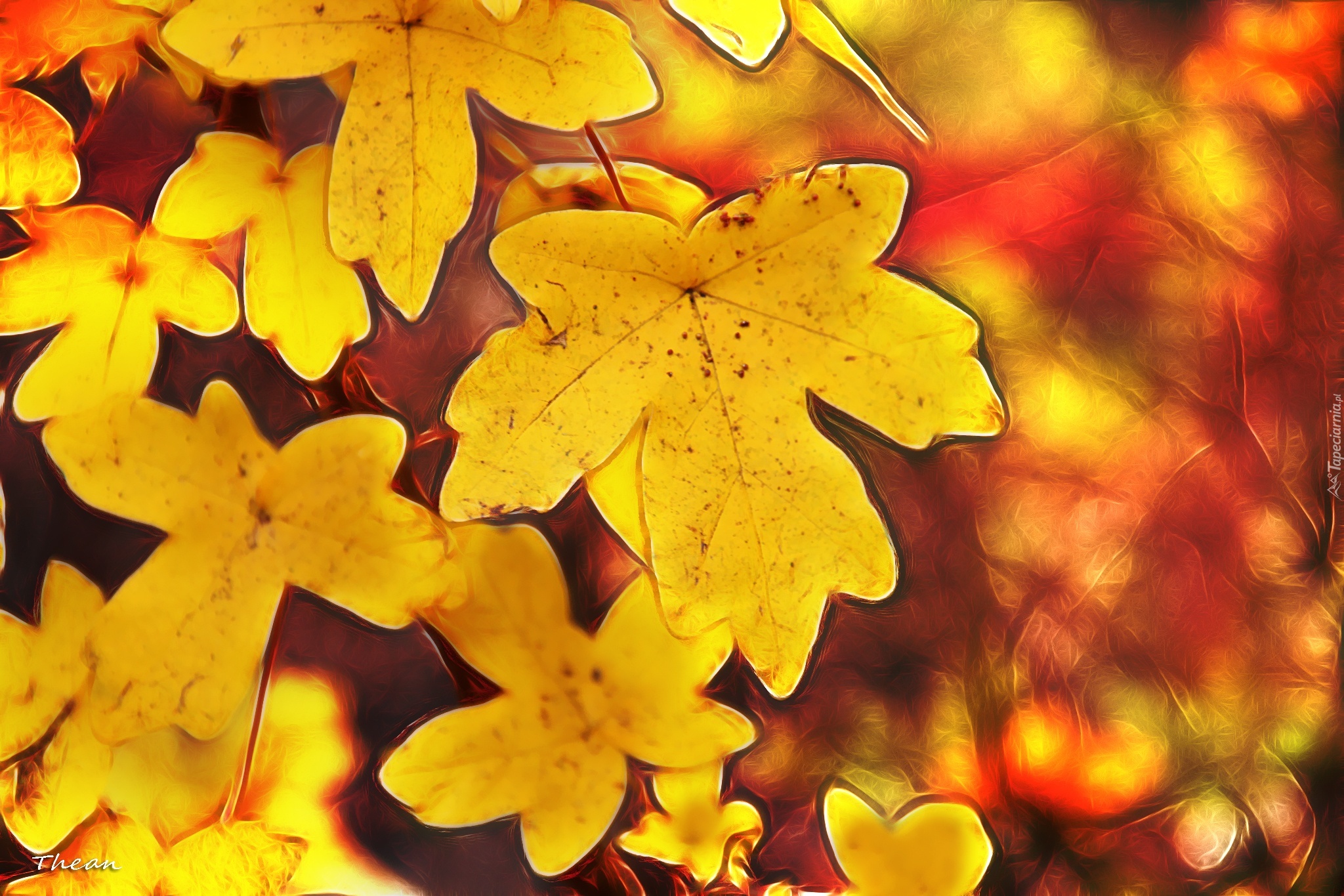 Edytor tapety: Żółte, Liście, Fractalius