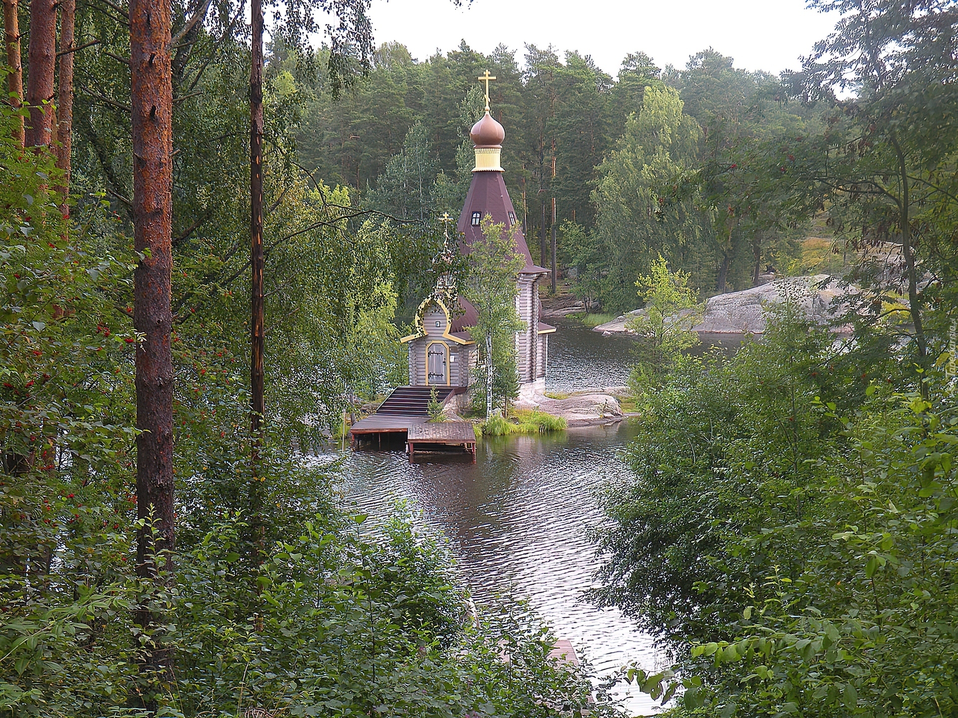Edytor tapety: Cerkiew, Jezioro, Drzewa