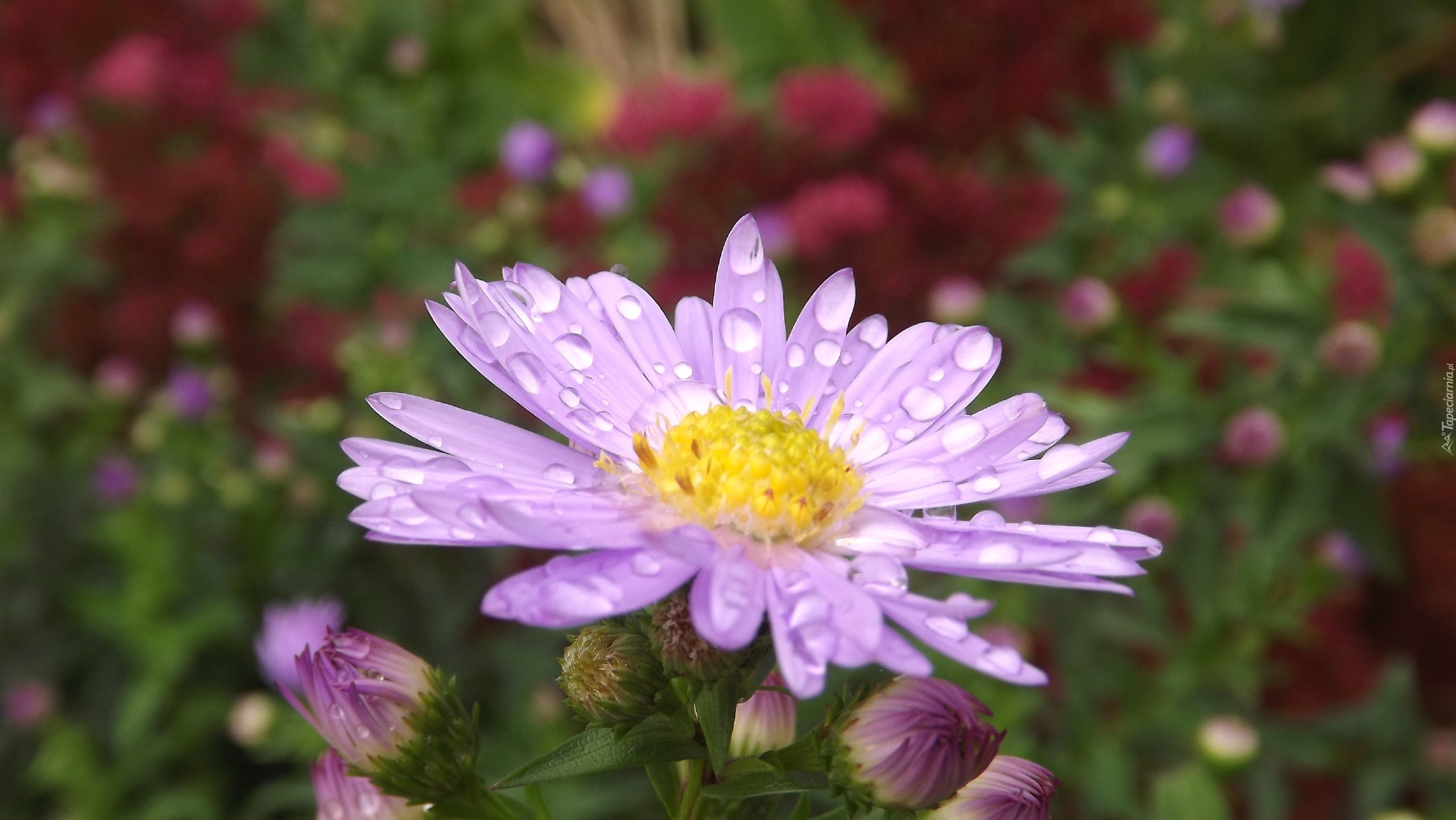 Edytor tapety: Aster, Fioletowy, Kropelki, Rosy