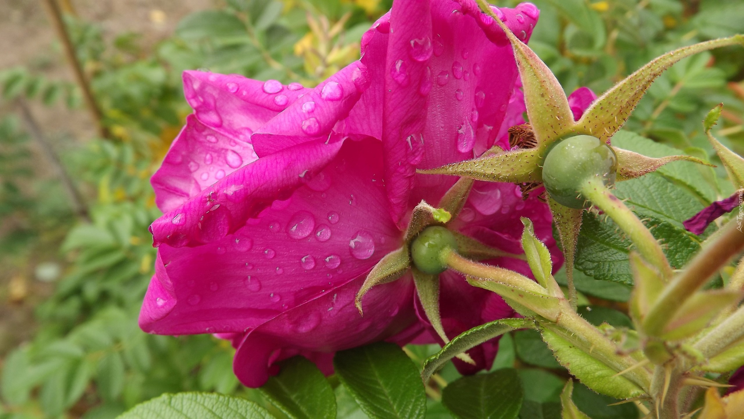 Edytor tapety: Różowa, Róża, Krople, Rosy