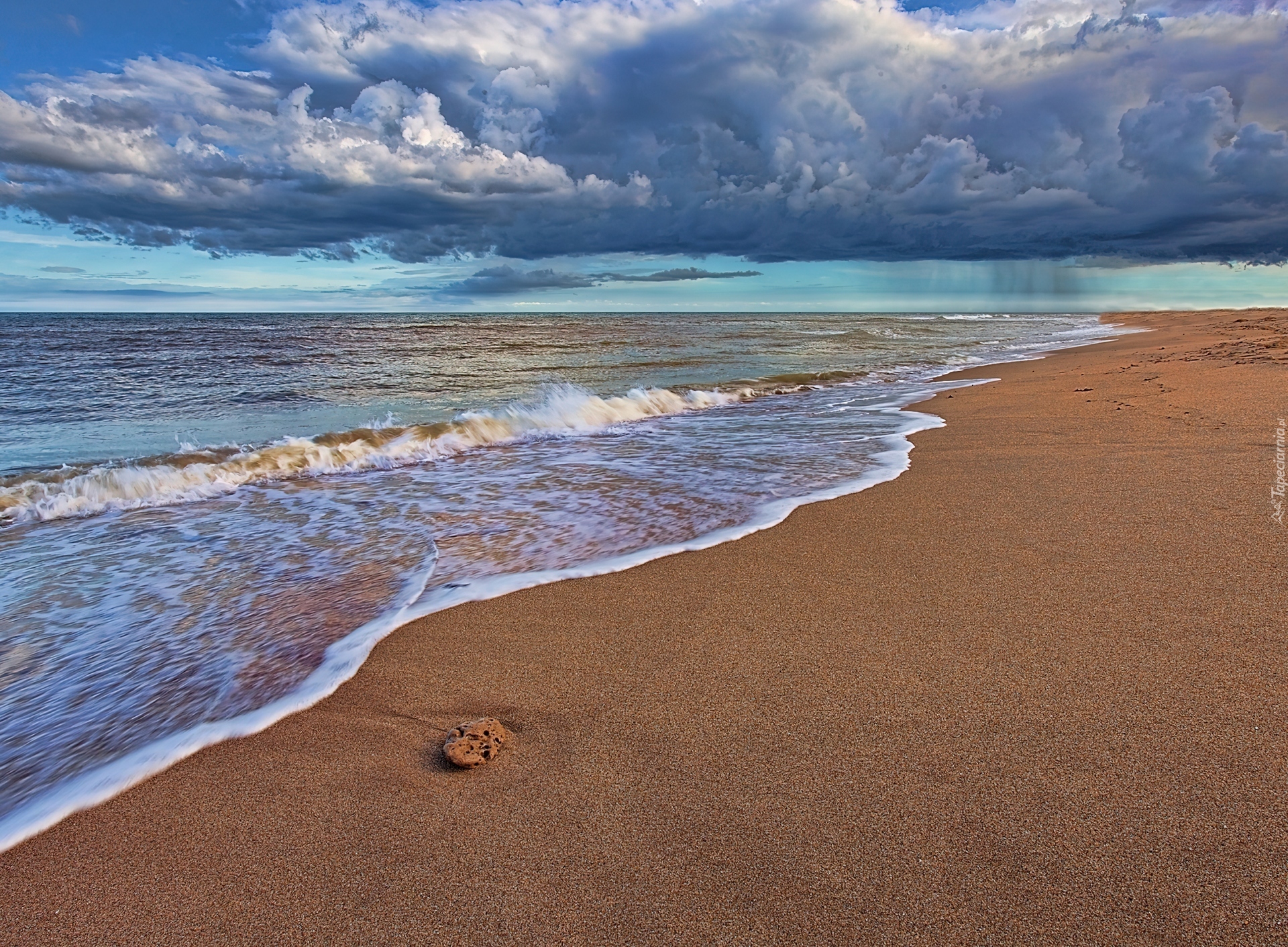 Edytor tapety: Morze, Plaża, Piasek, Fale, Chmury
