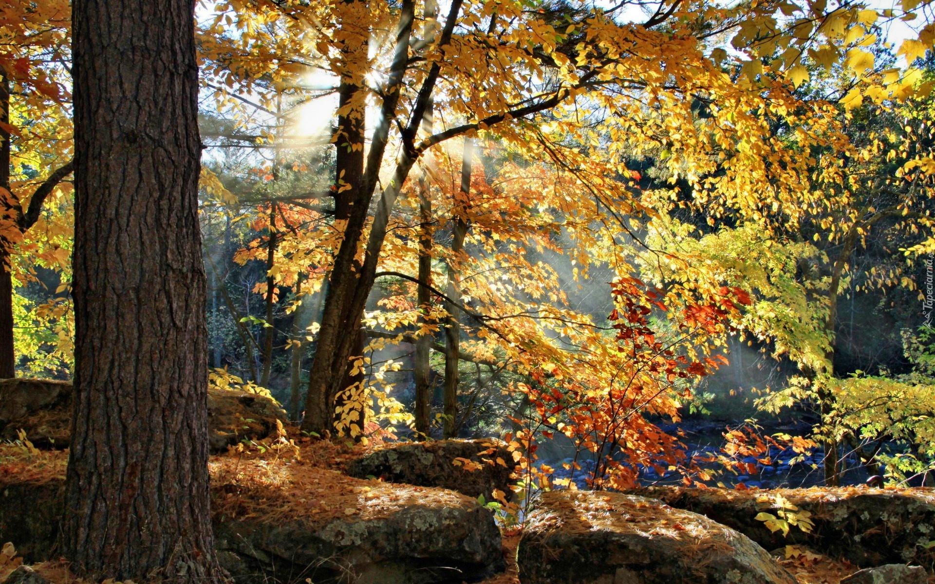 Edytor tapety: Las, Jesienne, Drzewo, Przebijające, Światło