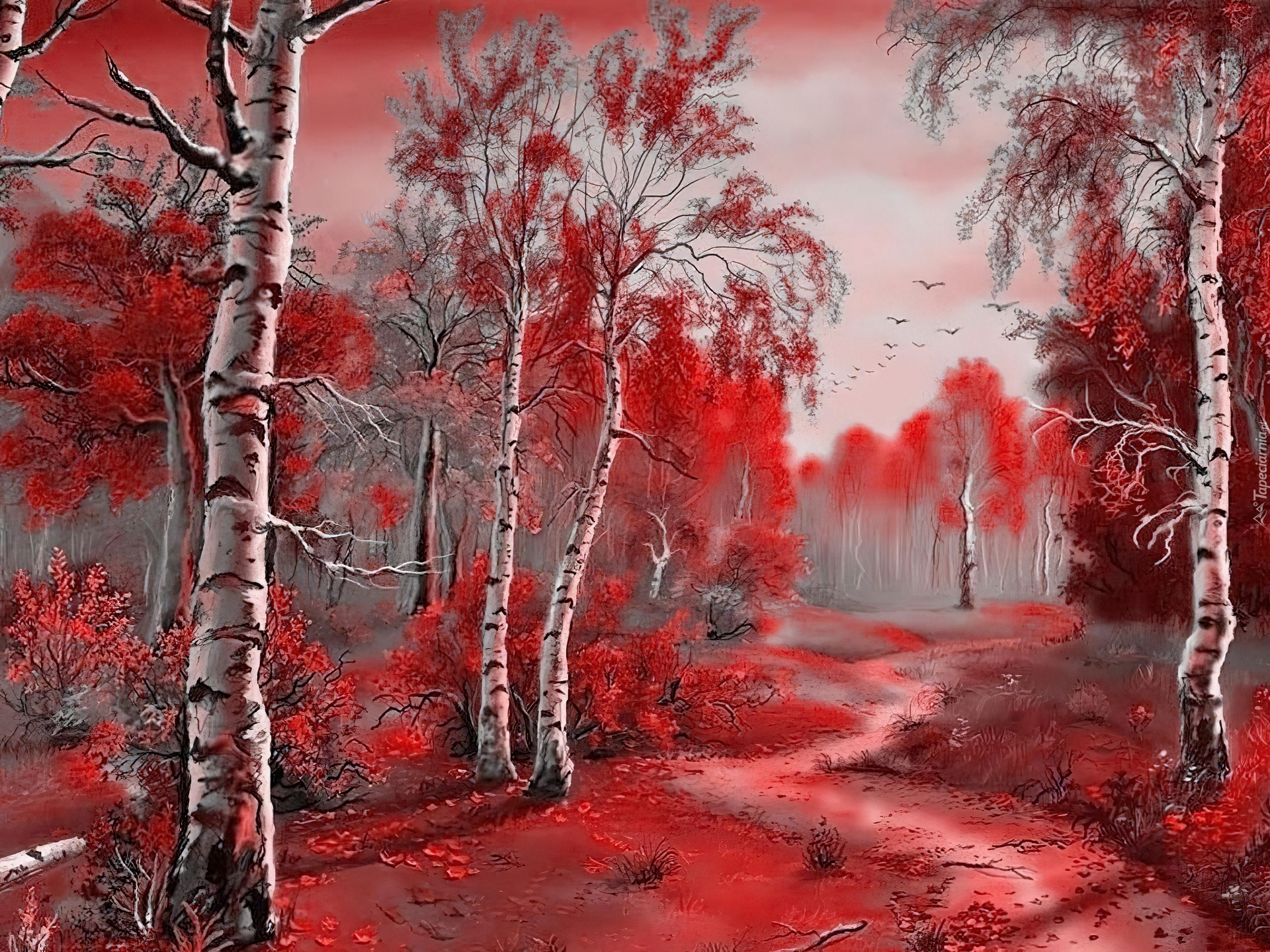 Edytor tapety: Lasek, Brzozowy, Ścieżka