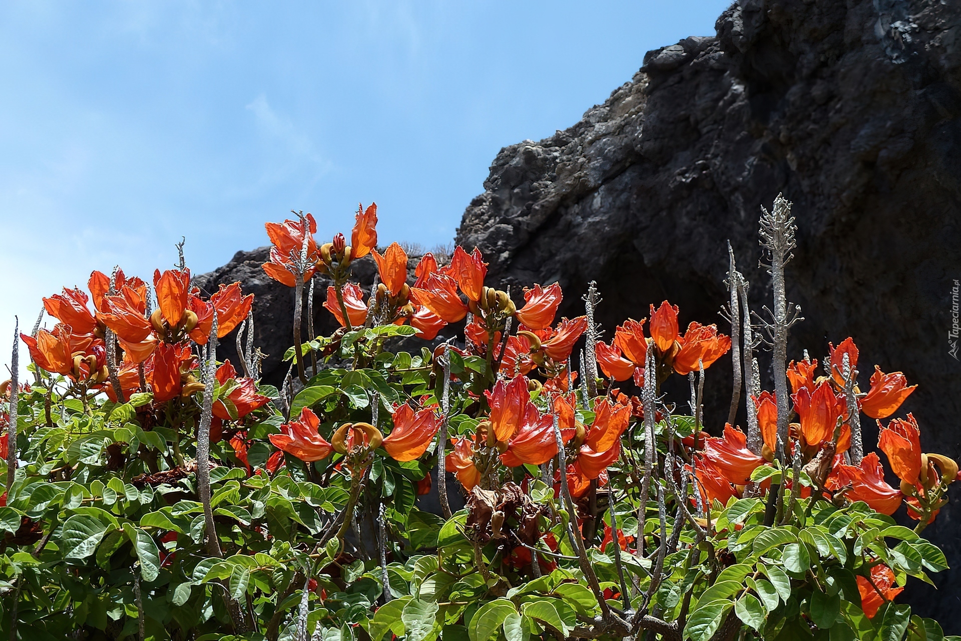 Edytor tapety: Pomarańczowe, Kwiaty, Skała