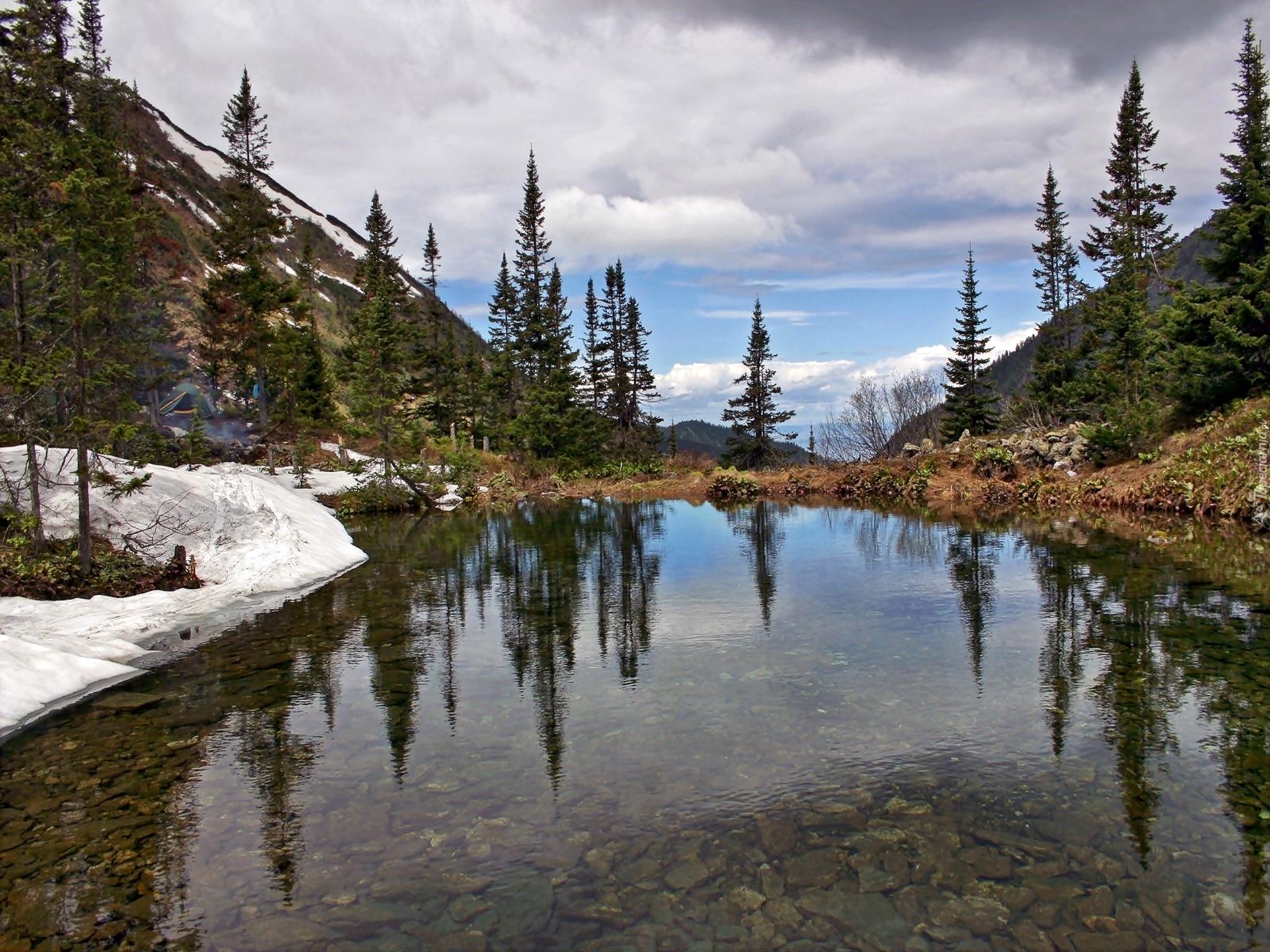 Edytor tapety: Chmury, Góry, Rzeka, Kamienie