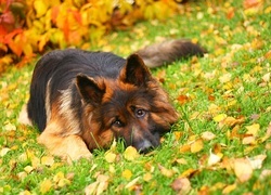 Edytor tapety: Owczar Niemiecki, Trawa, Liście