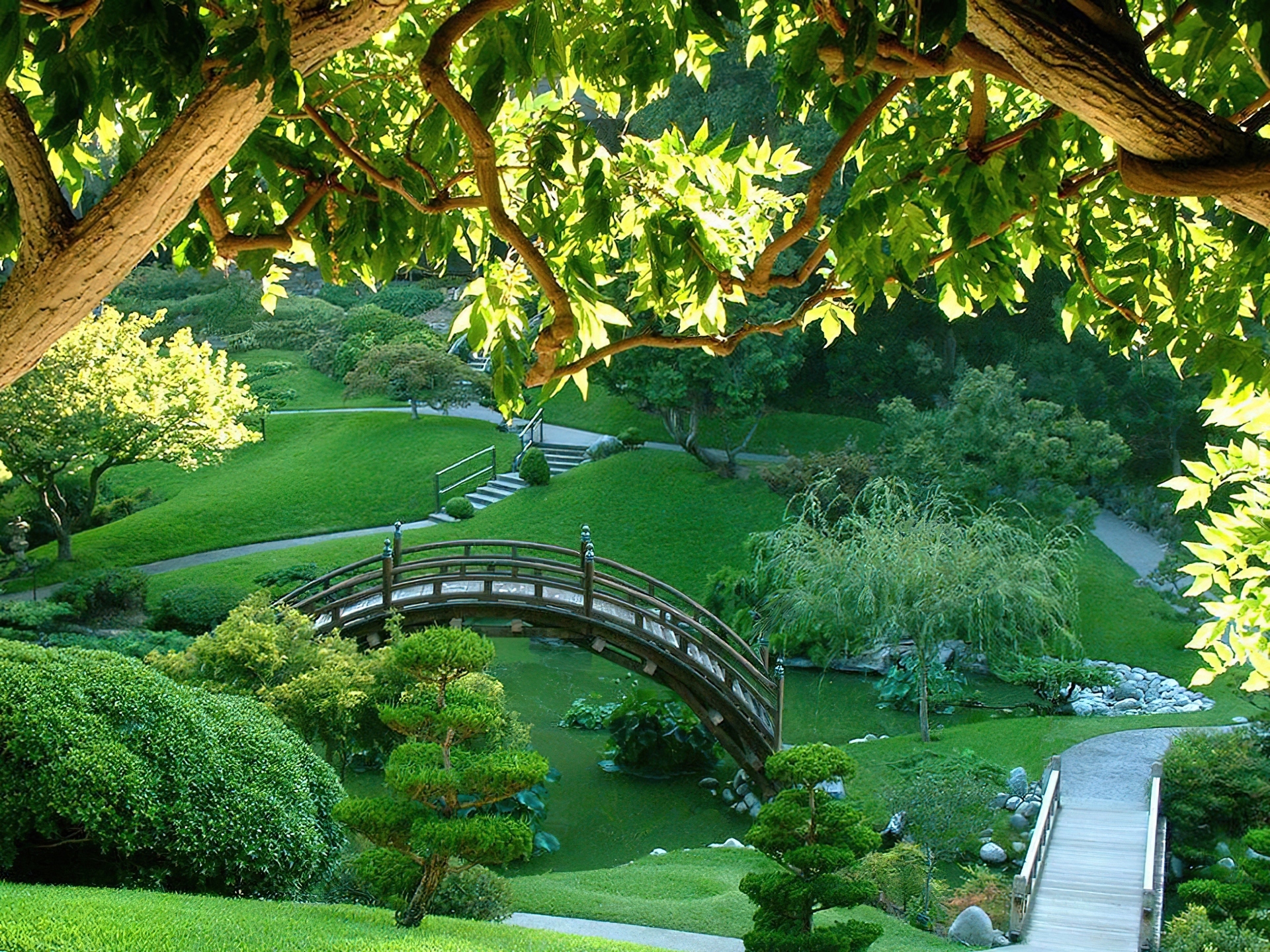 Edytor tapety: Ogród, Japoński, Mostek, Drzewa