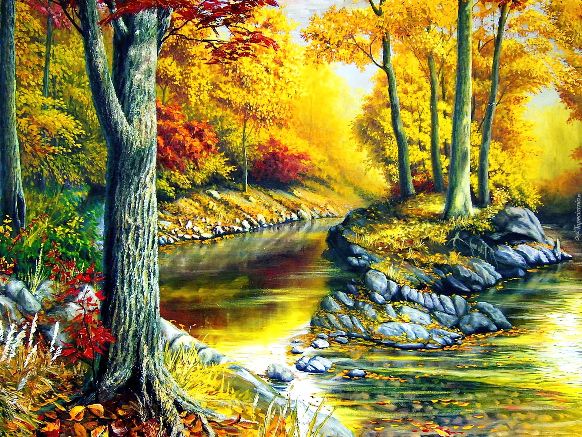 Edytor tapety: Jesień, Rzeczka, Drzewa