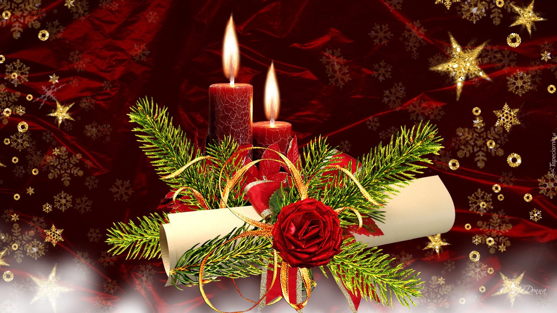 Edytor tapety: Czerwone, Świeczki, Róża, Stroik, Gwiazdki