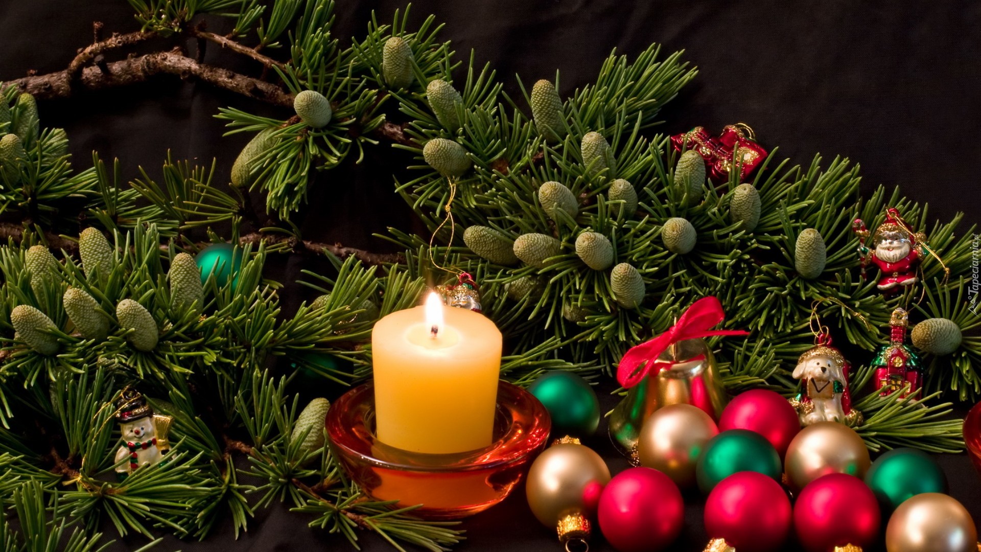 Edytor tapety: Świeczka, Kolorowe, Bombki, Stroik, Dekoracja, Boże Narodzenie