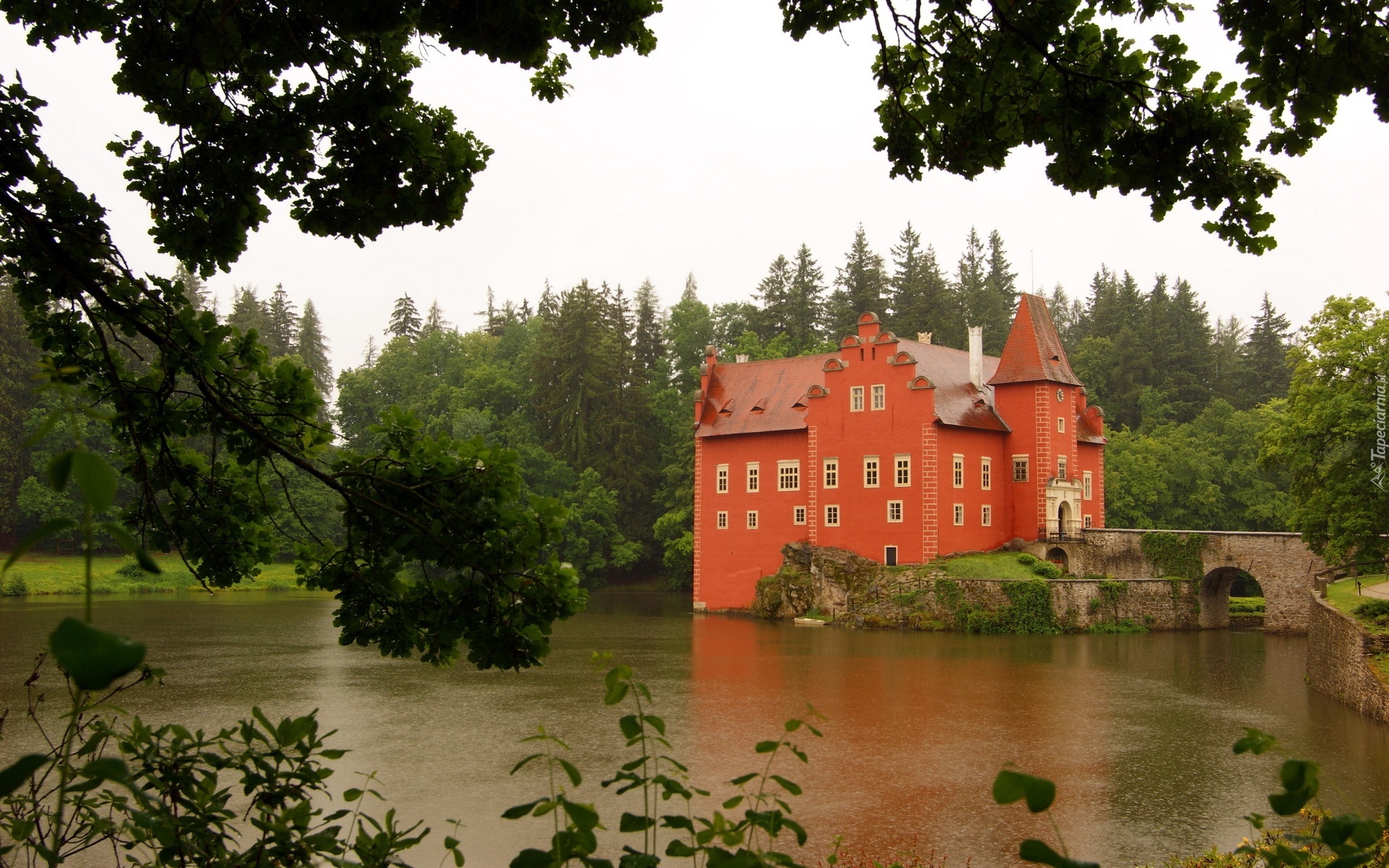 Edytor tapety: Willa, Mostek, Jezioro, Las