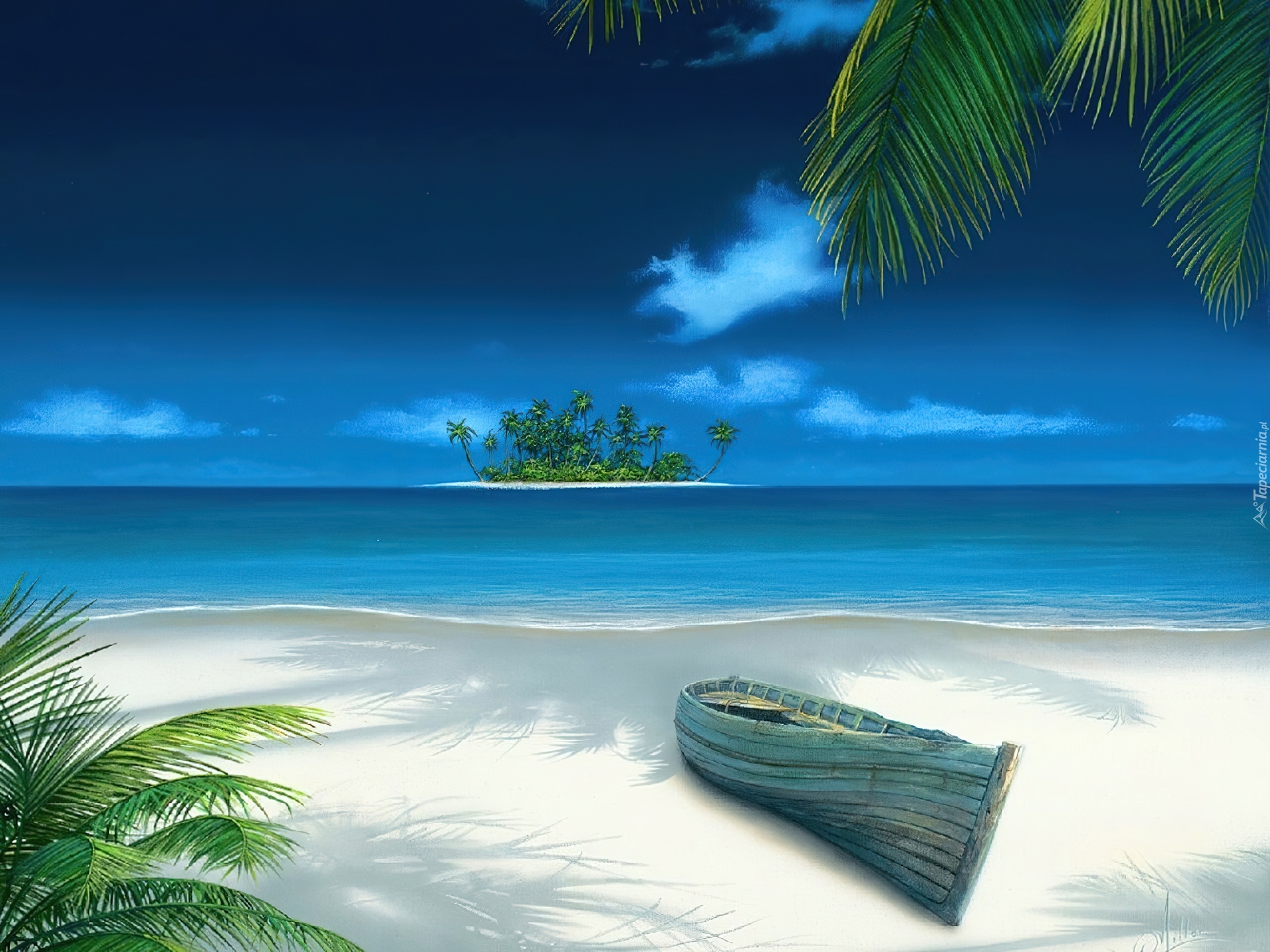 Edytor tapety: Morze, Łódka, Palmy, Wyspa
