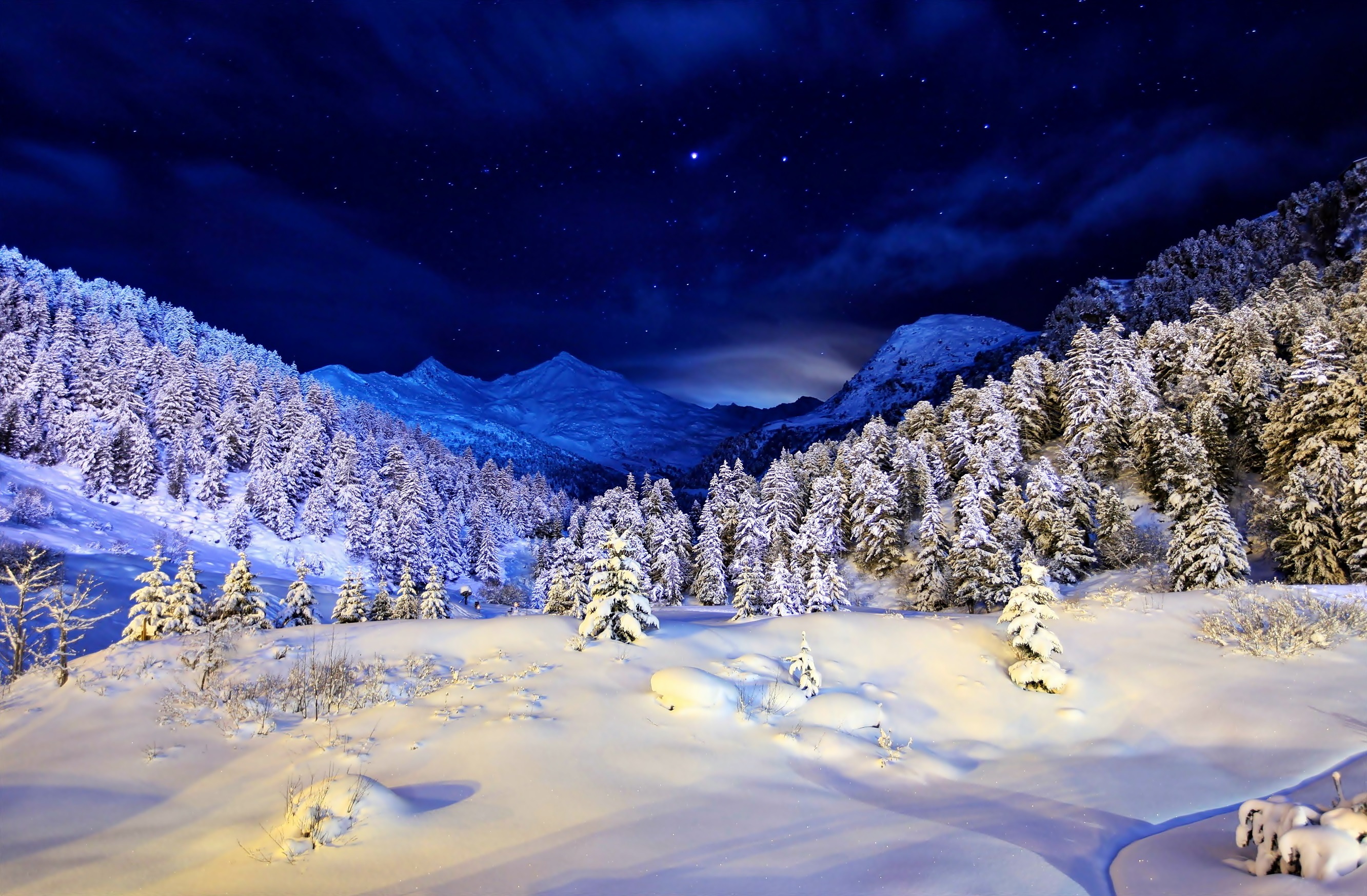 Edytor tapety: Góry, Las, Śnieg, Noc