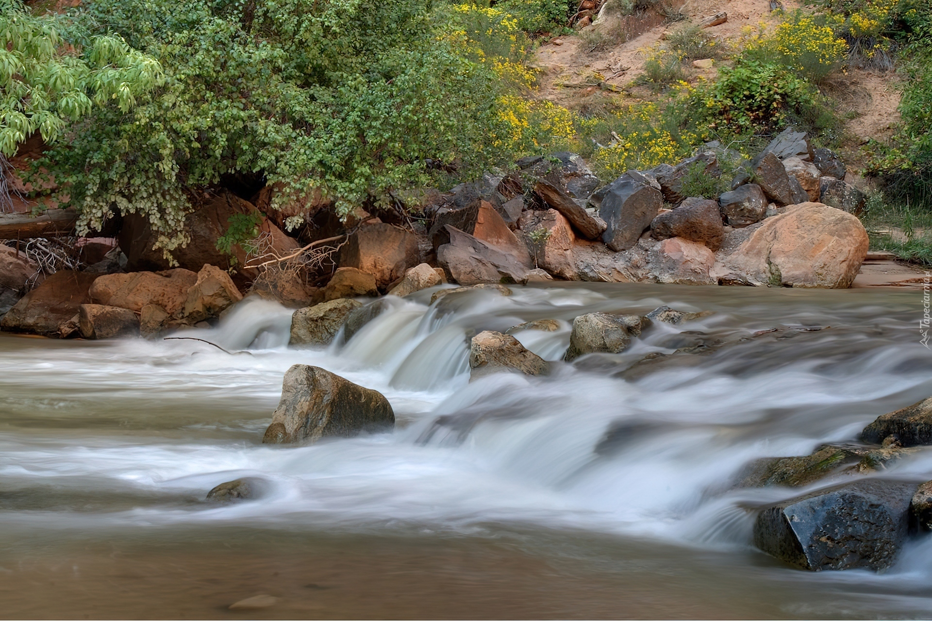 Edytor tapety: Rzeka, Kamienie, Roślinność