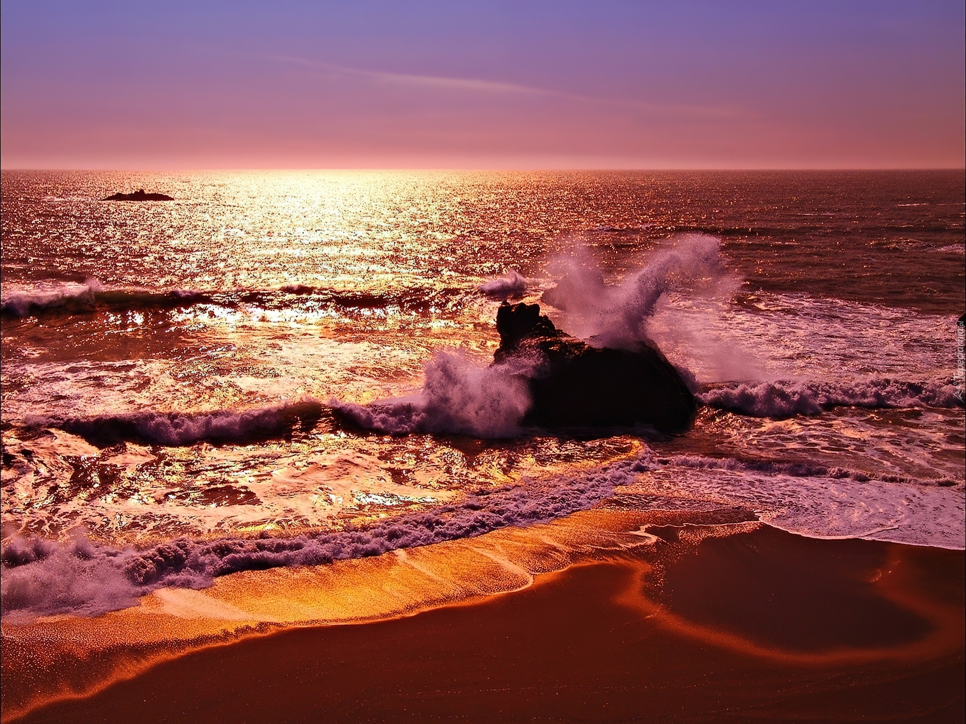 Edytor tapety: Morze, Plaża, Fale, Zachód Słońca