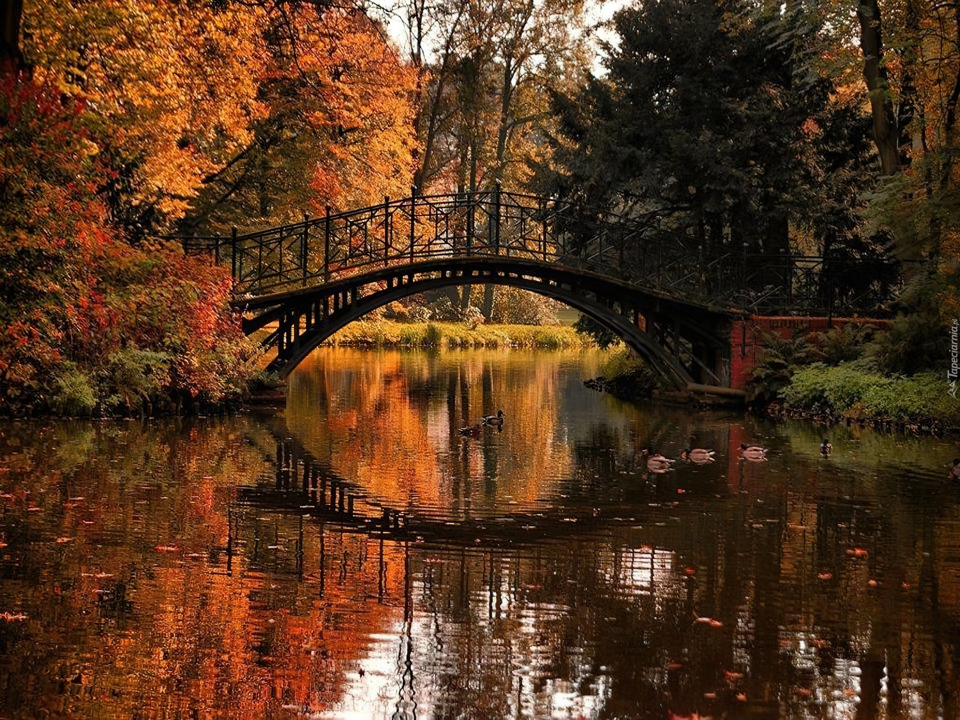 Edytor tapety: Jesień, Rzeka, Kaczki, Most