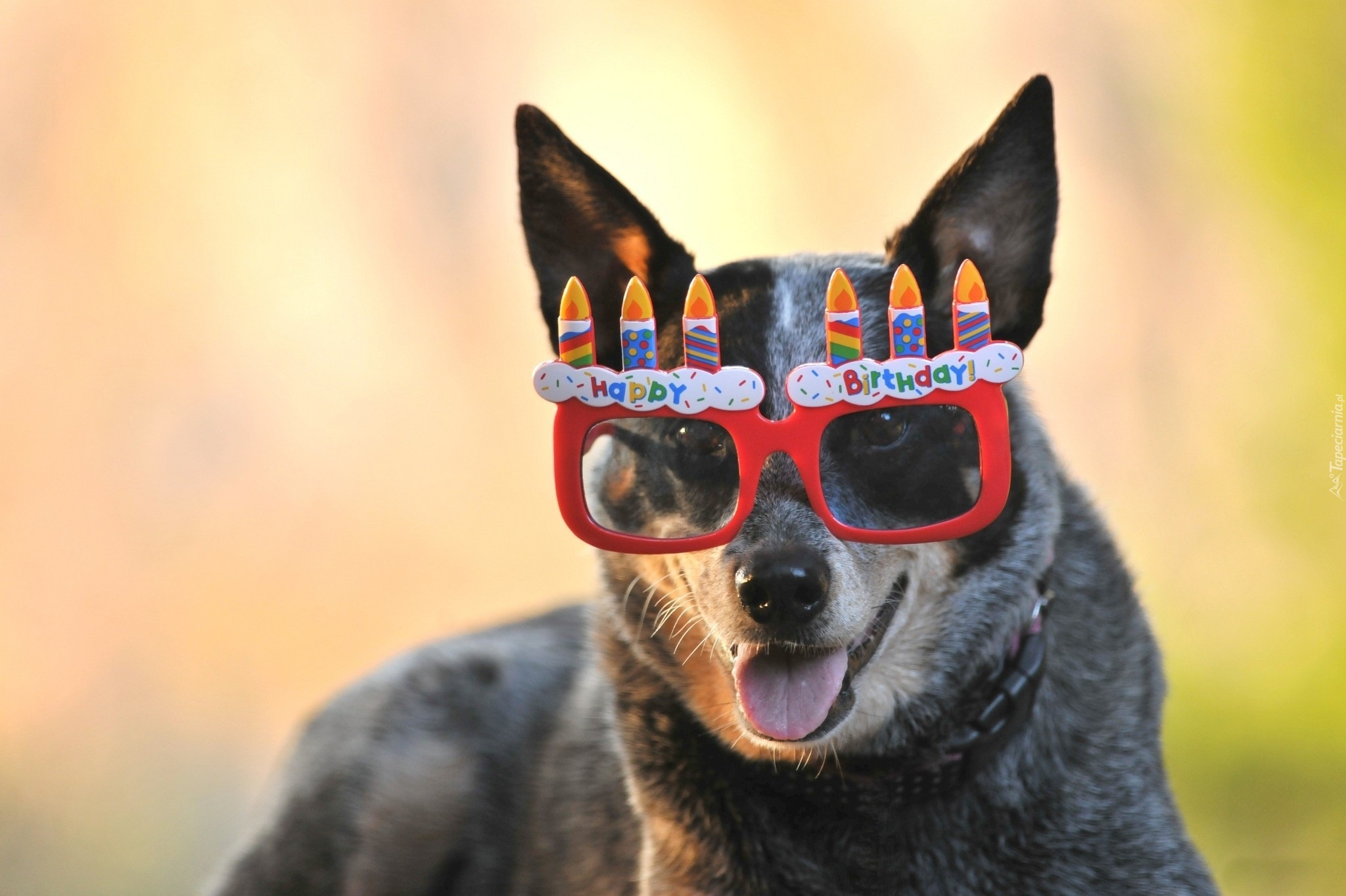 Edytor tapety: Pies, Czerwone, Okulary, Urodziny