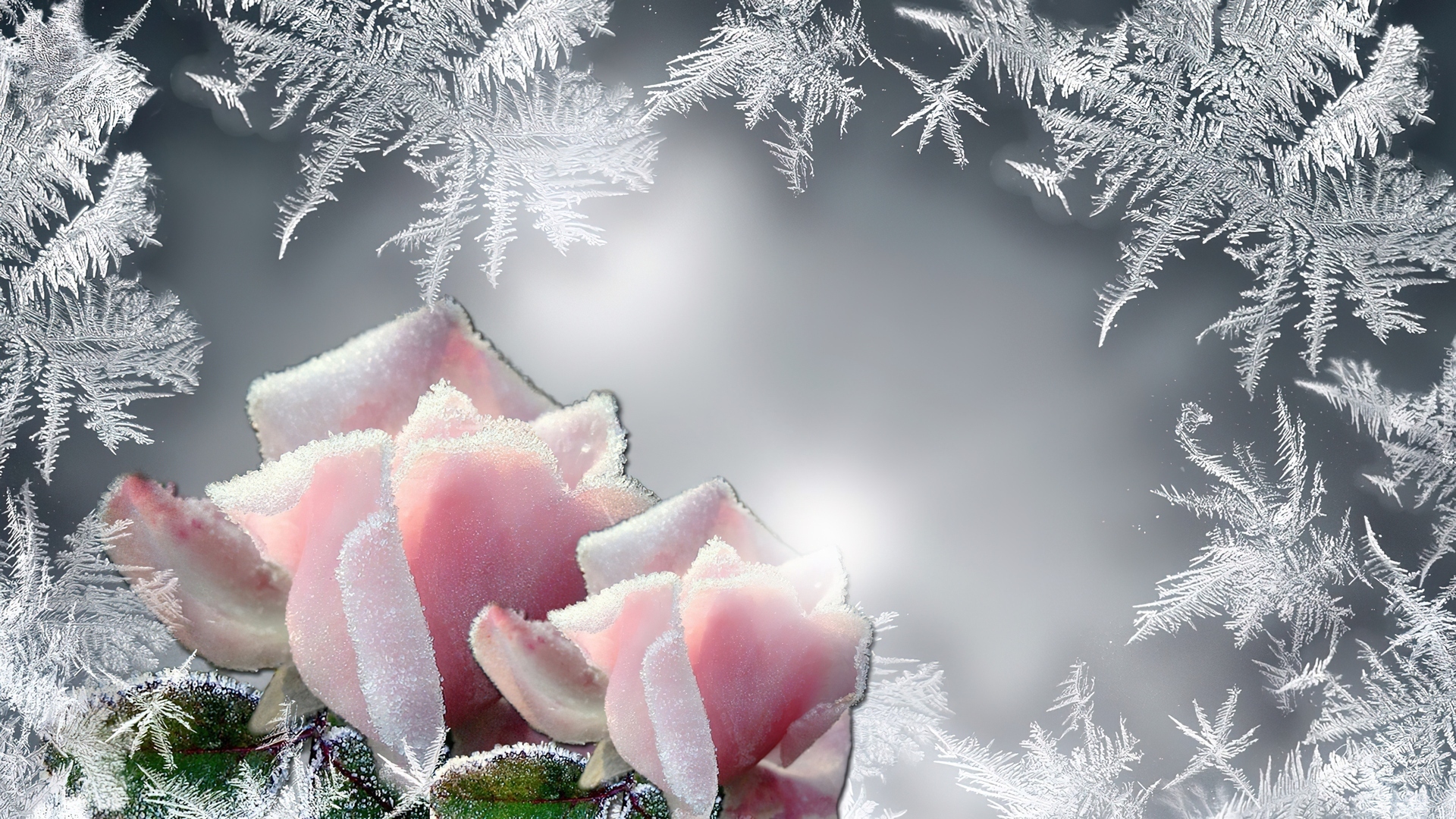 Edytor tapety: Oszronione, Różowe, Róże, Mróz