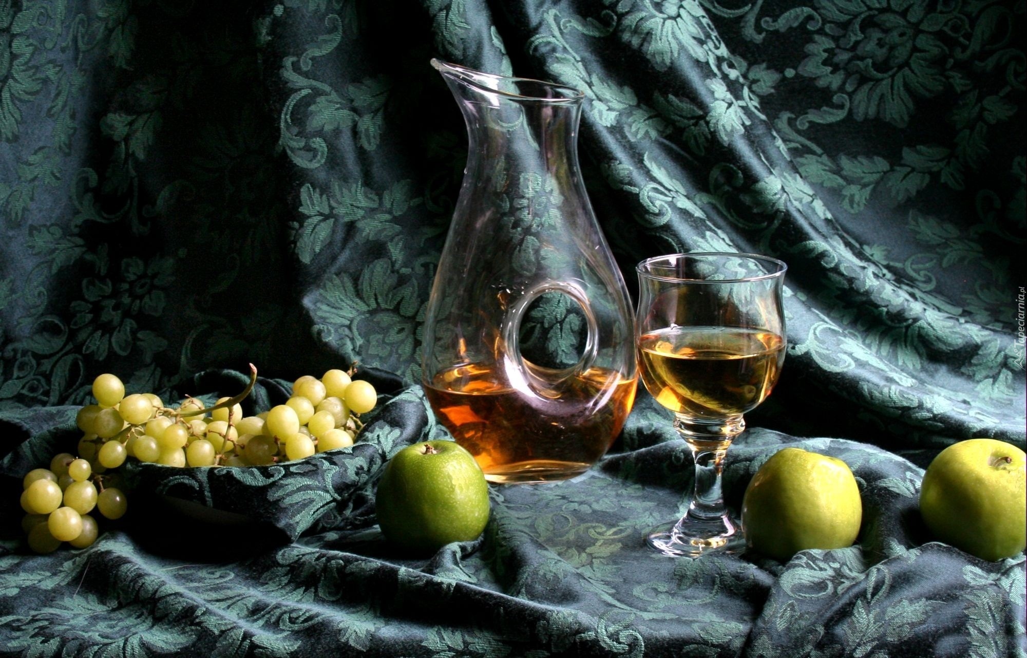 Edytor tapety: Winogrona, Jabłka, Karafka, Kieliszek