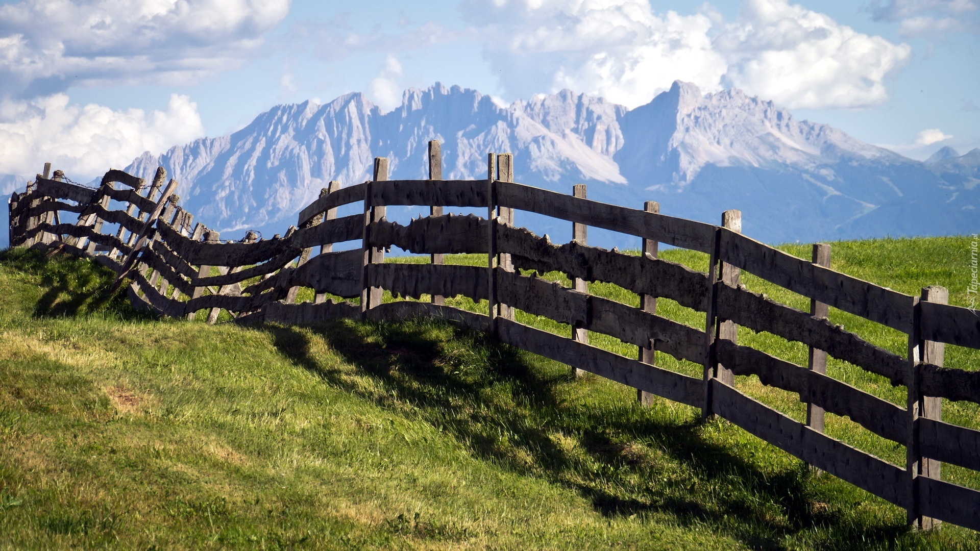 Edytor tapety: Góry, Łąki, Ogrodzenie, Chmury