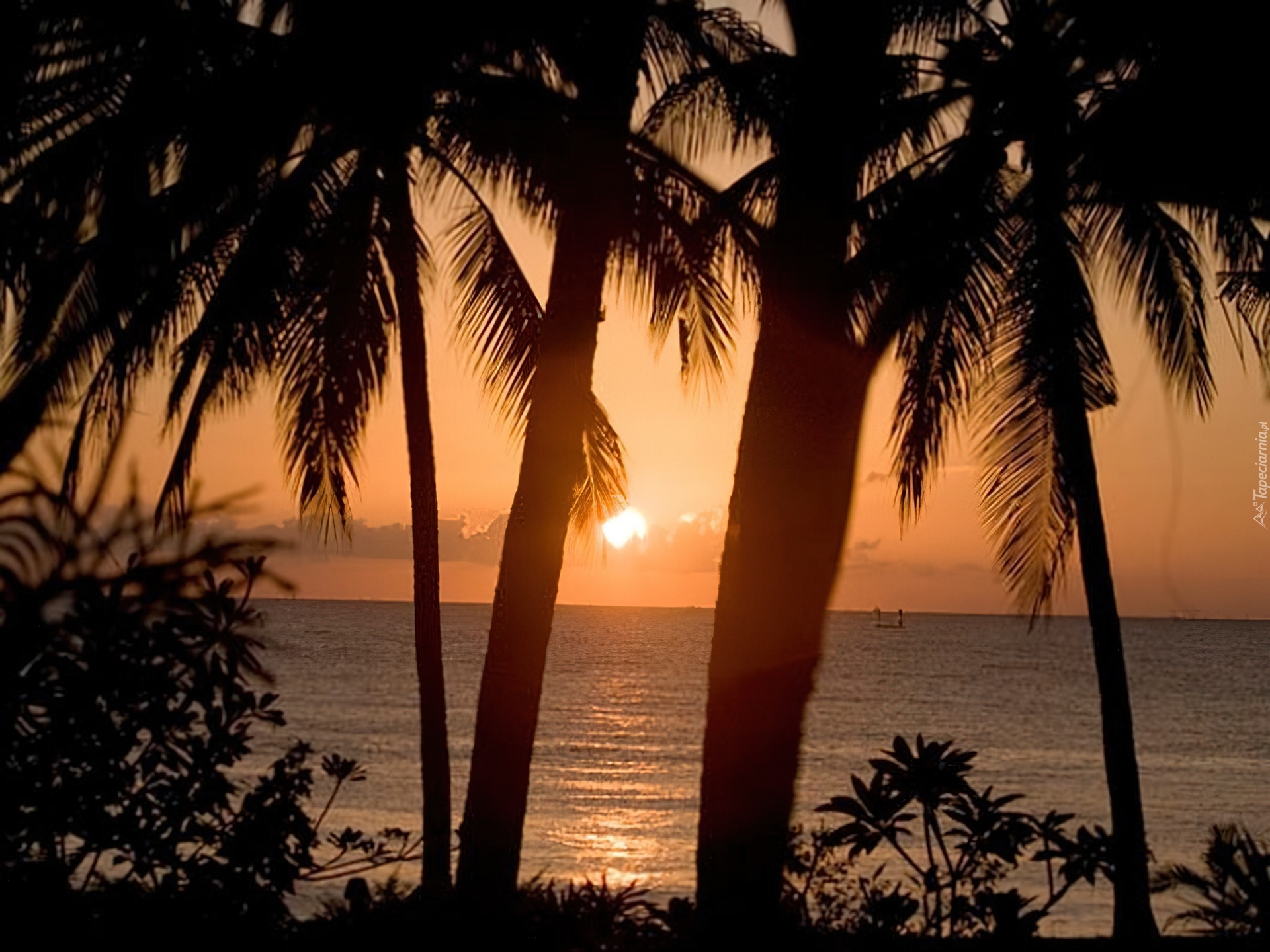 Edytor tapety: Palmy, Morze, Zachód Słońca