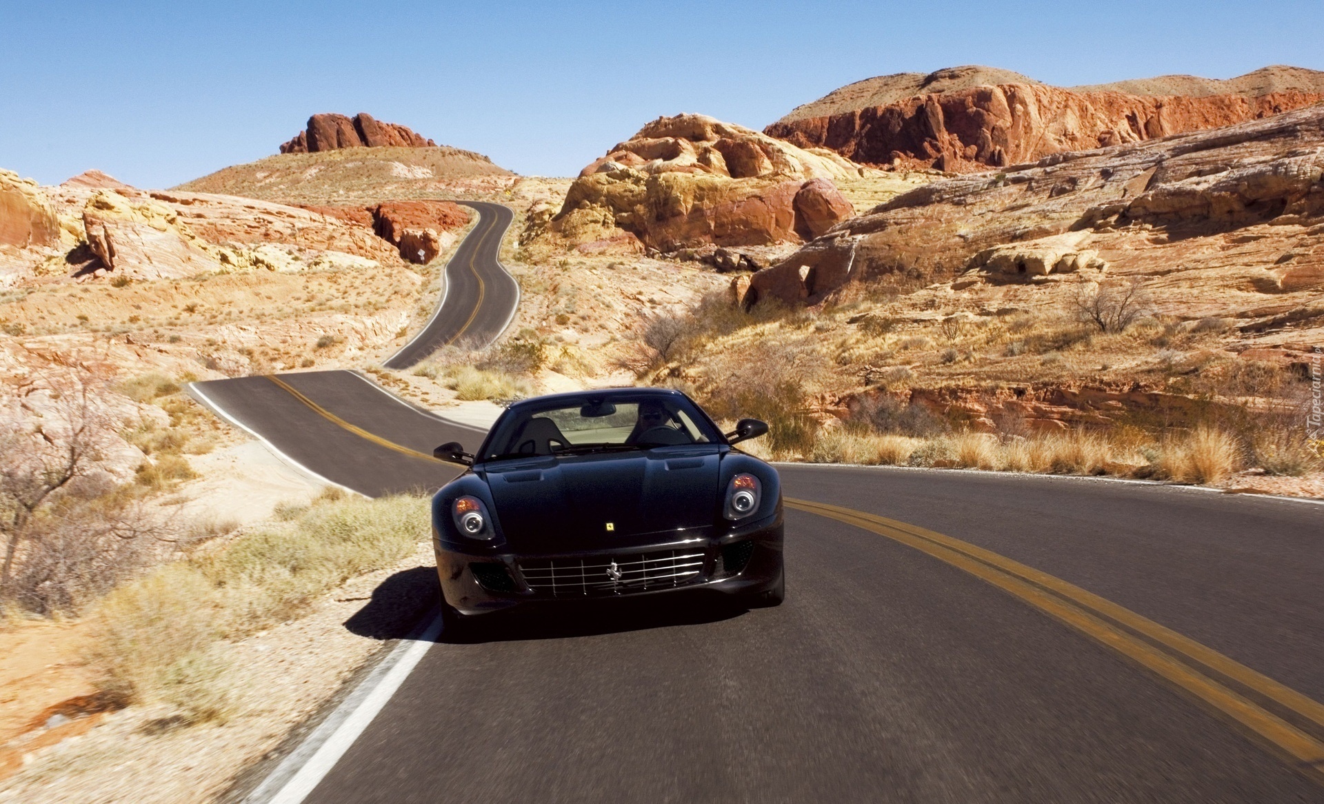 Edytor tapety: Pustynia, Droga, Czarne, Ferrari