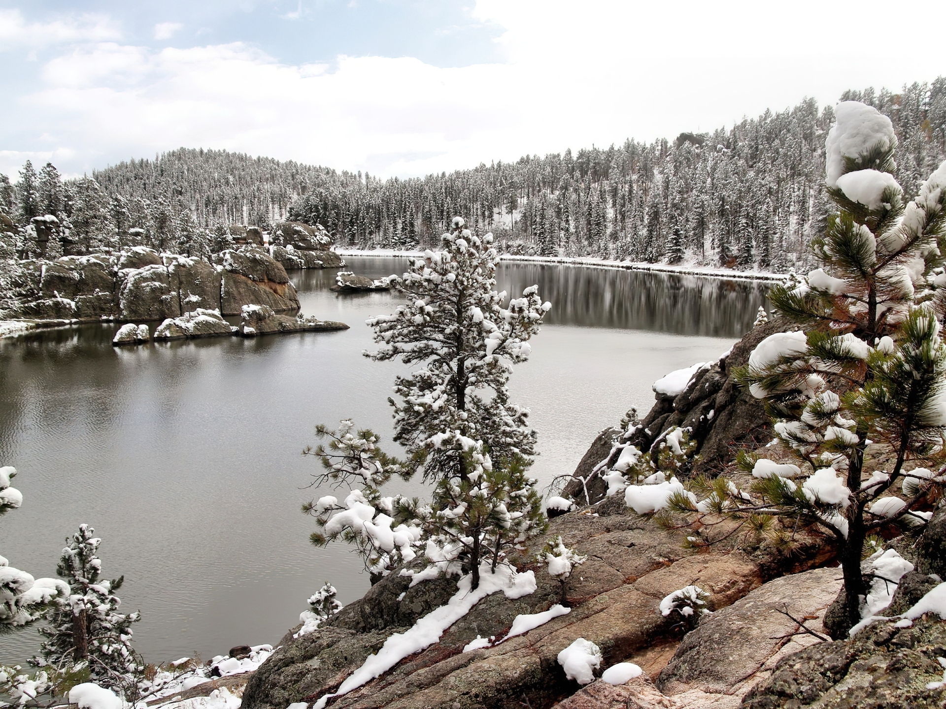 Edytor tapety: Jezioro, Drzewa, Śnieg