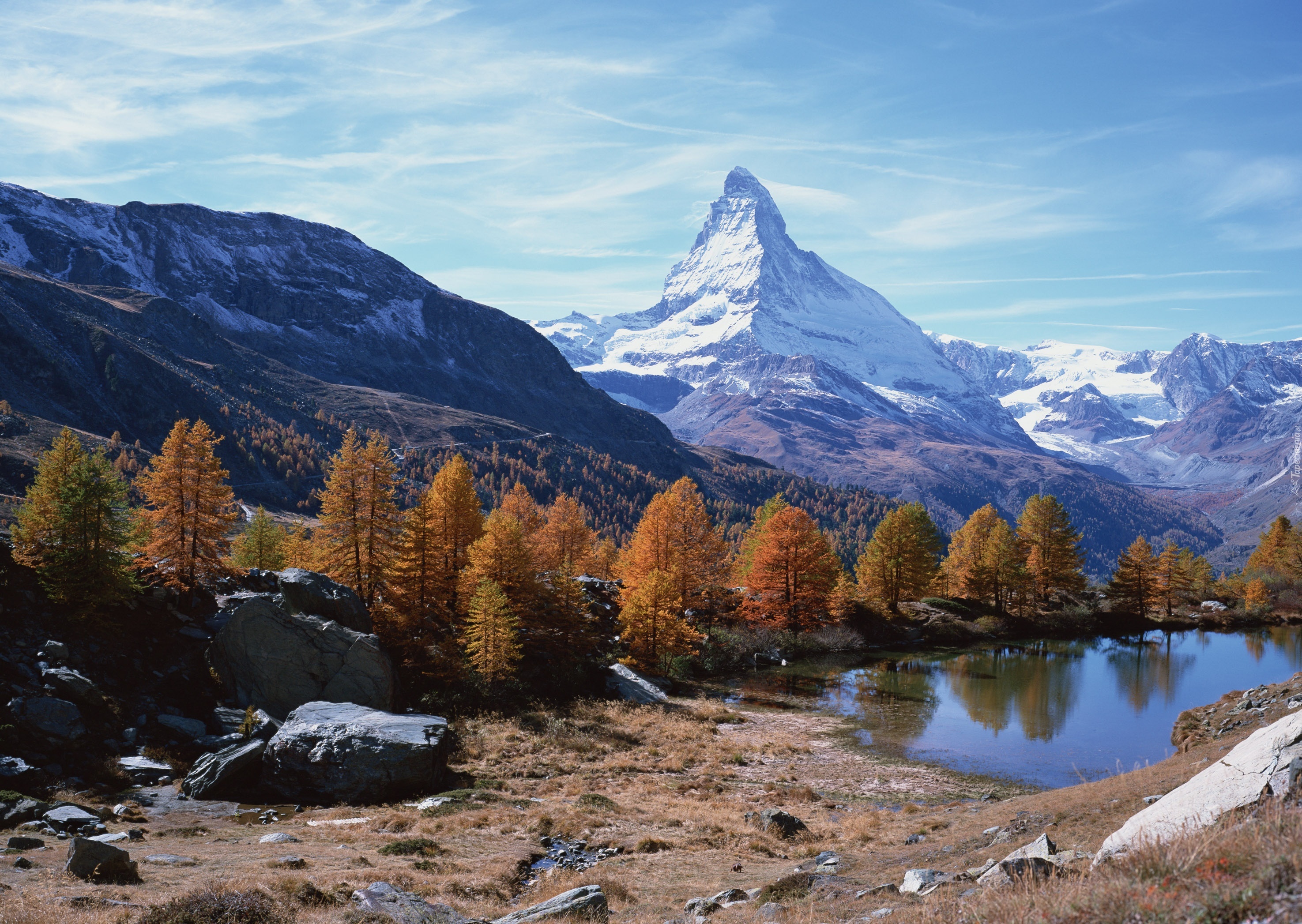 Edytor tapety: Ośnieżone, Góry, Lasy, Jeziorko, Drzewa
