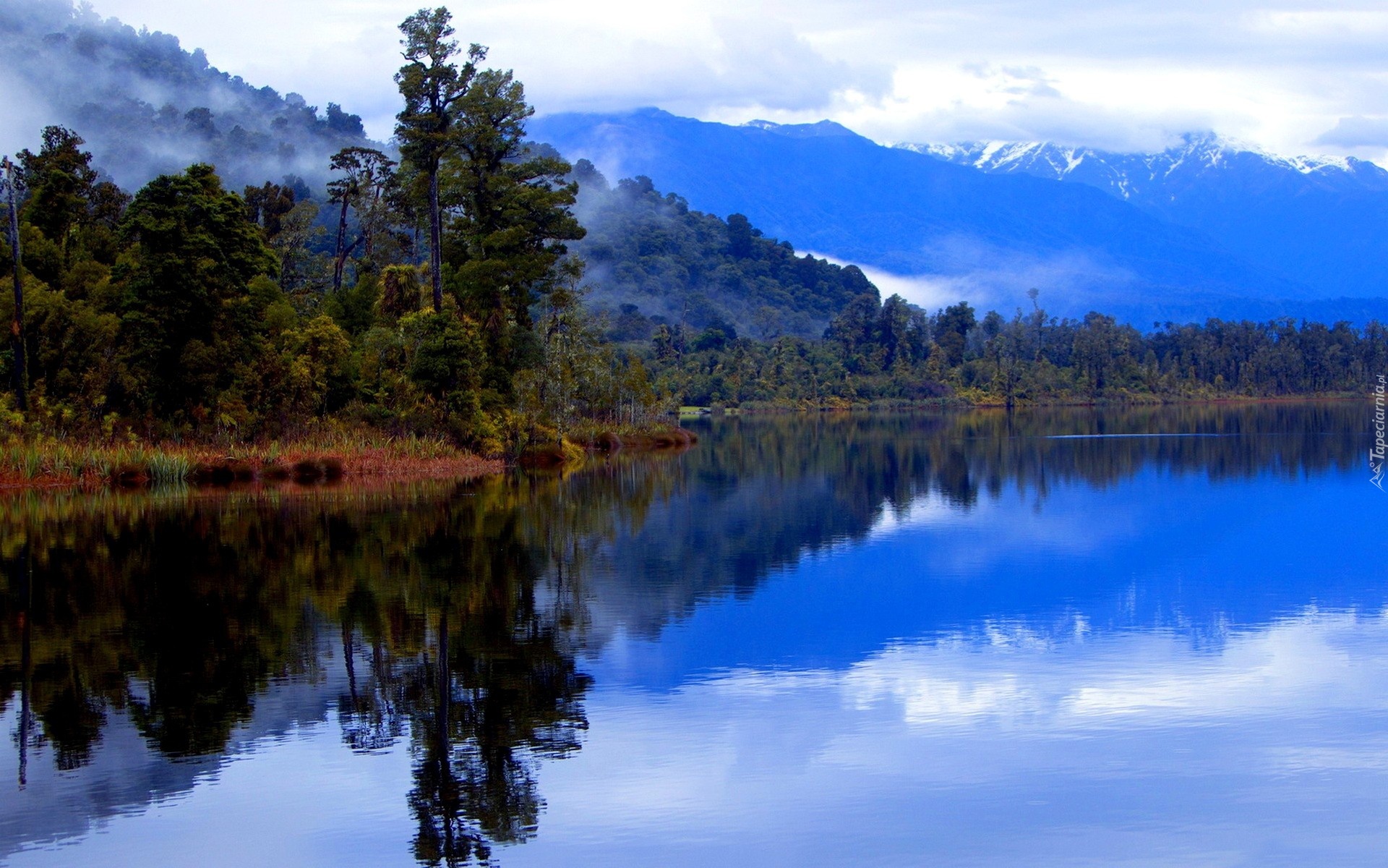 Edytor tapety: Rzeka, Góry, Lasy, Mgła