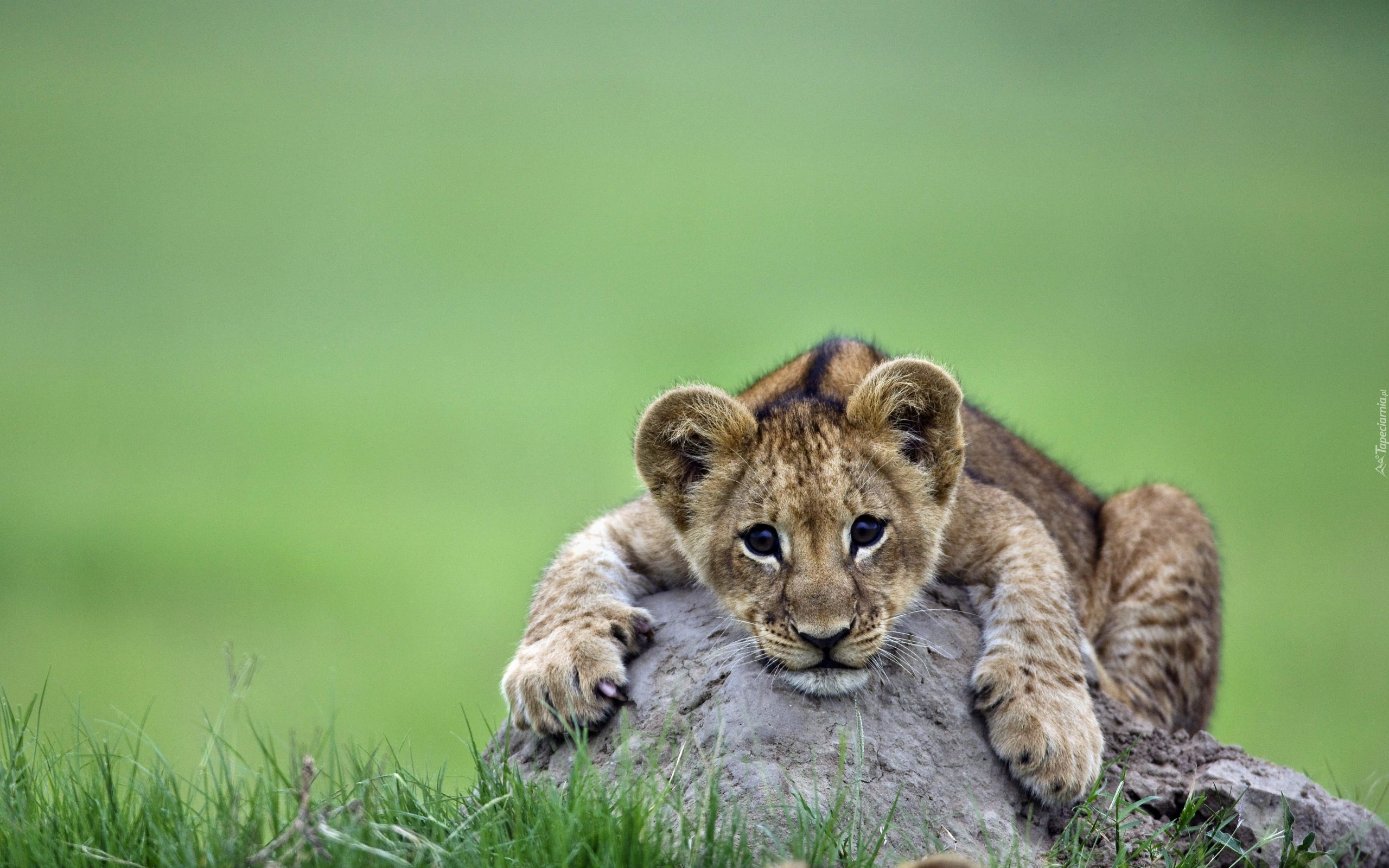 Edytor tapety: Lwiątko, Kamień, Trawa