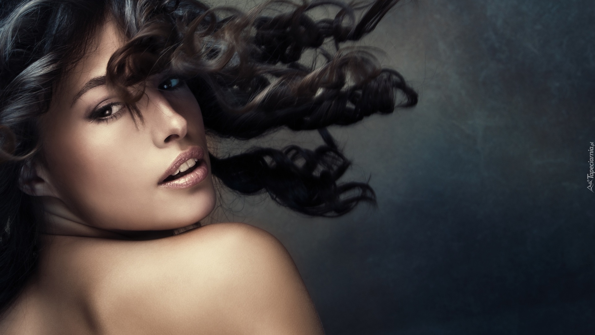 Edytor tapety: Kobieta, Spojrzenie, Kręcone, Włosy